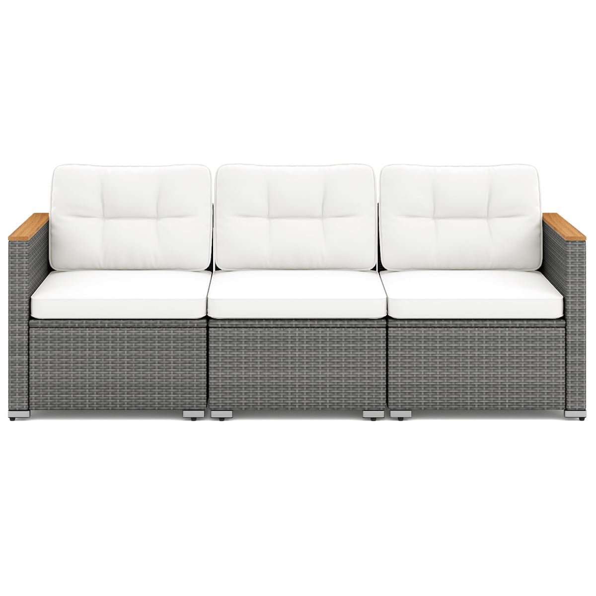 Colour of PE Rattan:Mix Grey Colour of Cushion: Off White Material: PE Rattan, Metal, Acacia Wood, Polyester, Sponge Overall Dimensions: 194 x 66 x 65 cm (L x W x H) Dimensions of Seating Area: 180 x 60 cm (L x W) Dimensions of Each Seat Cushion: 60 x 60 x 7 cm (L x W x Thickness) Dimensions of Each Back Cushion: 61 x 39 x 12 cm (L x W x Thickness) Seat Height: 31.5 cm Total Net Weight: 24 kg Weight Capacity of Each Sofa: 180 kg Box Qty: 1(May vary by batch) Package Includes: 1 x Left Corner Sofa 1 x Armless Sofa 1 x Right Corner Sofa 3 x Back Cushions 3 x Seat Cushions 1 x Instruction Manual