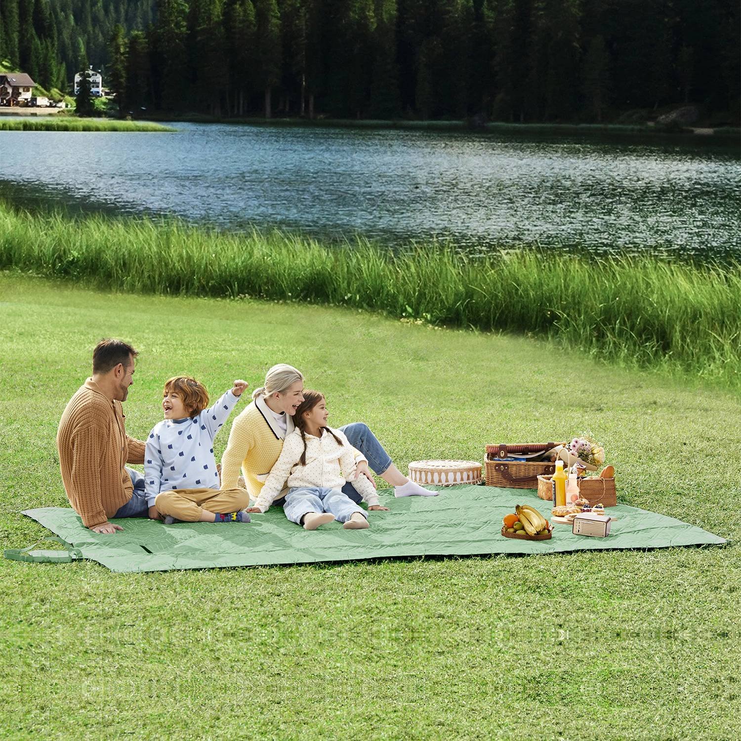 Picnic Blanket, 200 x 200 cm, with 4 Ground Pegs, Large Picnic Mat for Beach Park, Waterproof Layer, Machine Washable, Khaki with Leaf Pattern