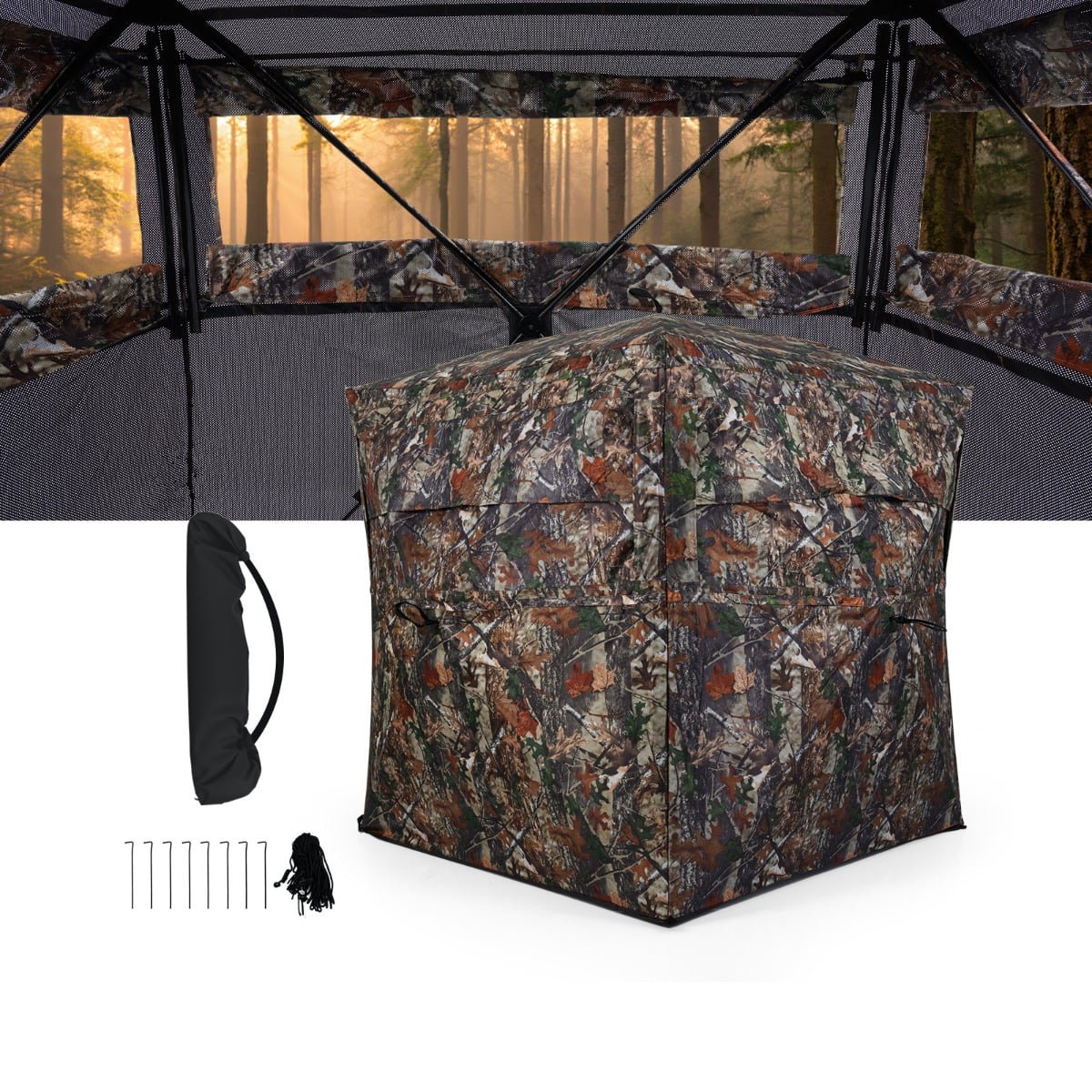360 Degree One-way See-through Hunting Blind 4 People Ground Blind with Silent-slide Windows