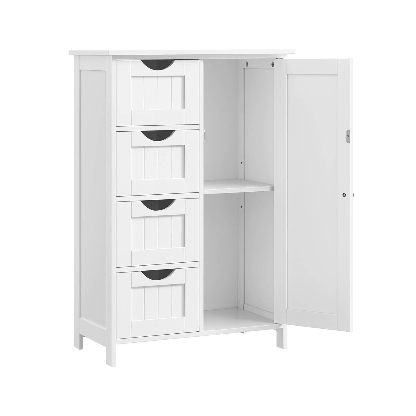 VASAGLE Cupboard Bathroom Cabinet with 4 Drawers and 1 Wardrobe Compartment in White Wood 55 x 81 x 30 cm (B x H x T) LHC41W