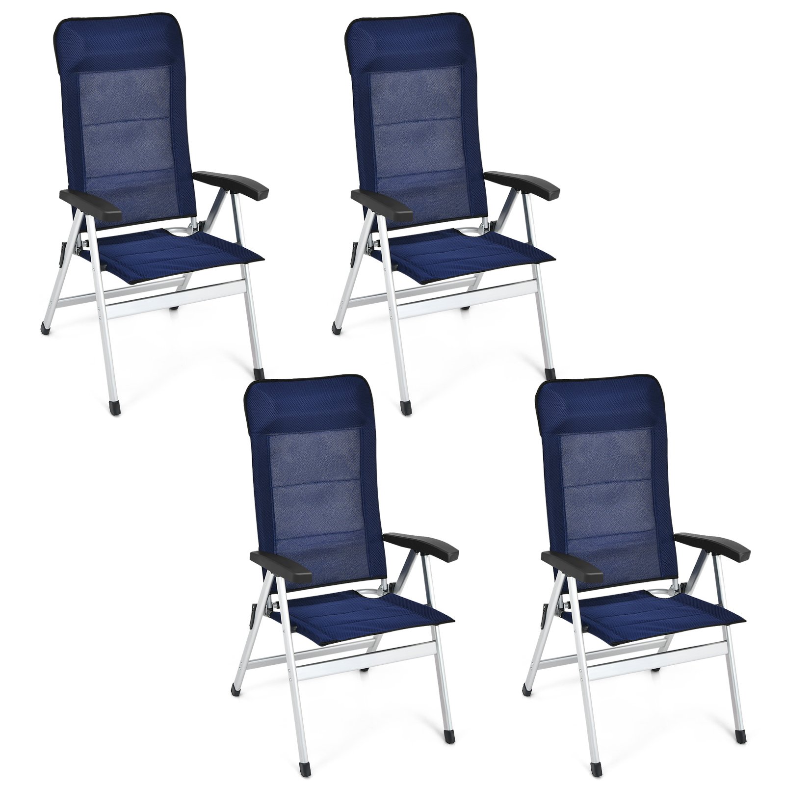 4-Piece Patio Portable Folding Lounge Chair with Raised Backrest-Navy
