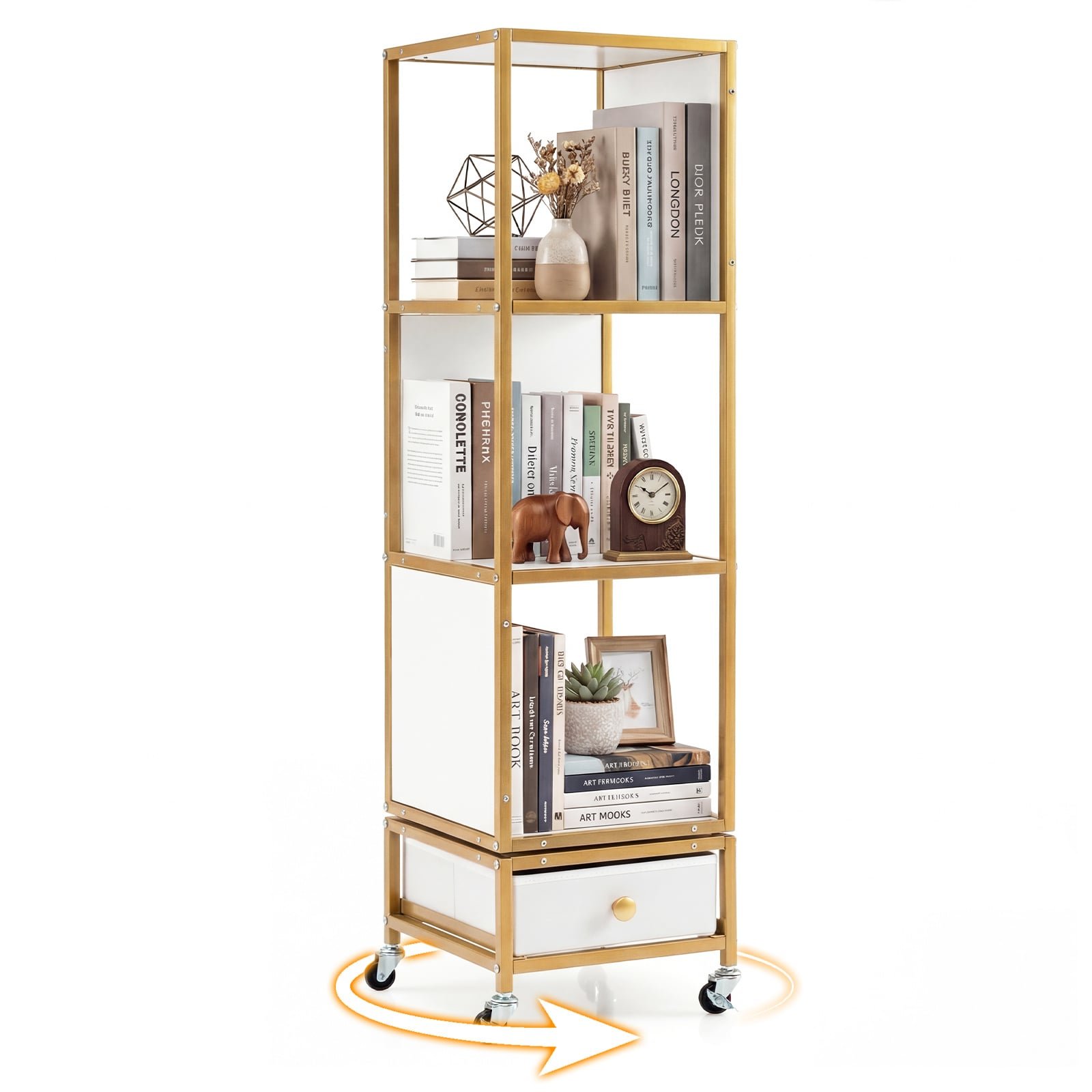 4-Tier Rotating Bookshelf on Wheels for Living Room Office-White