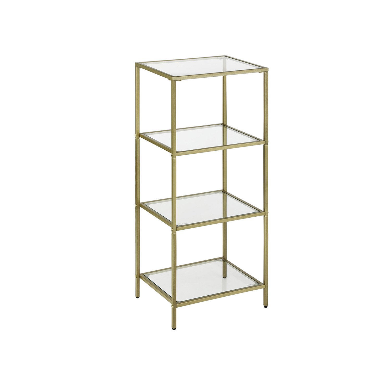 VASAGLE Bathroom Storage Shelf, Tempered Glass Storage Rack, 4-Tier Storage Unit, Sturdy, Easy to Assemble, for Living Room, Bedroom, Office, Golden LGT28G