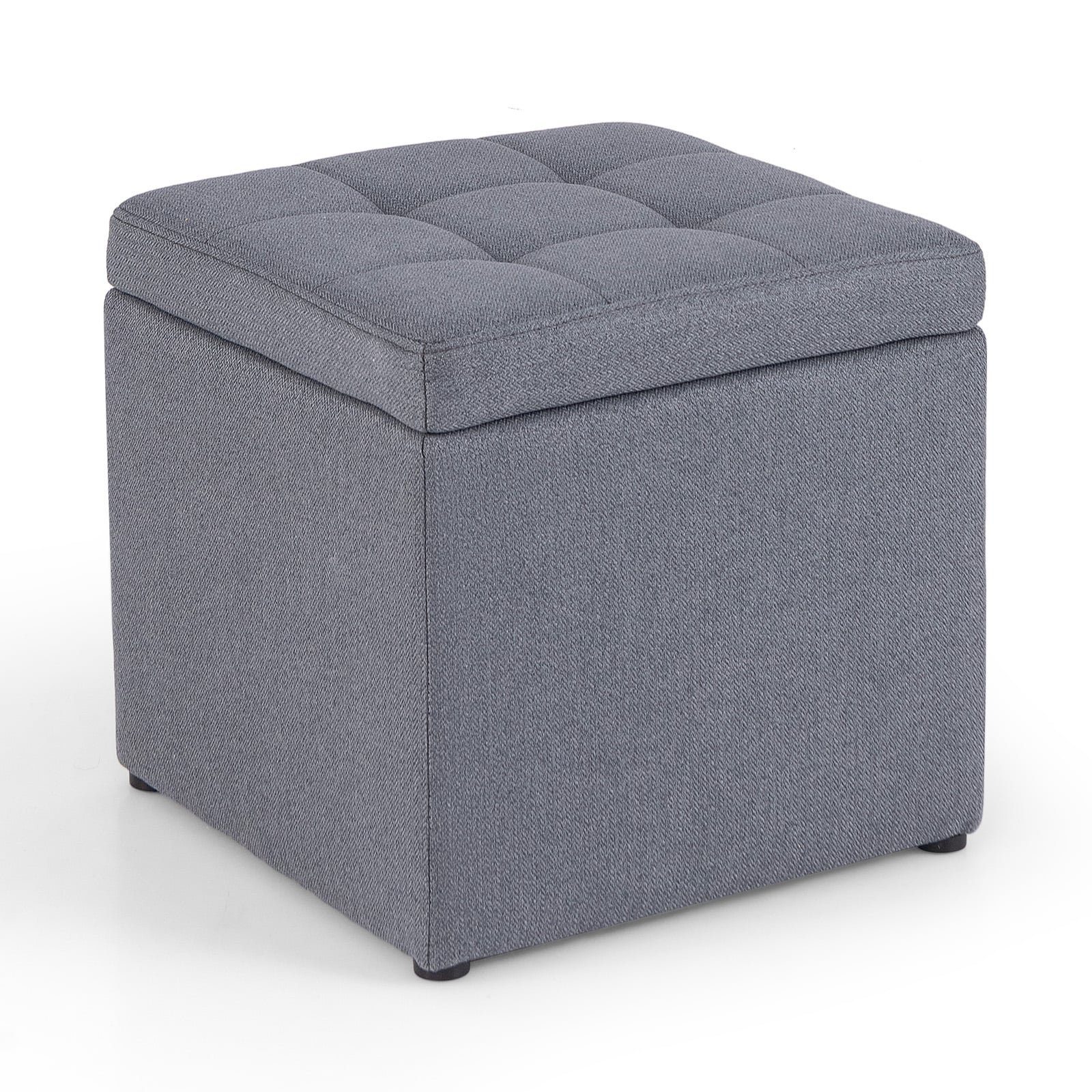 40 cm Square Storage Ottoman Linen Fabric Footstool with Lid-Grey