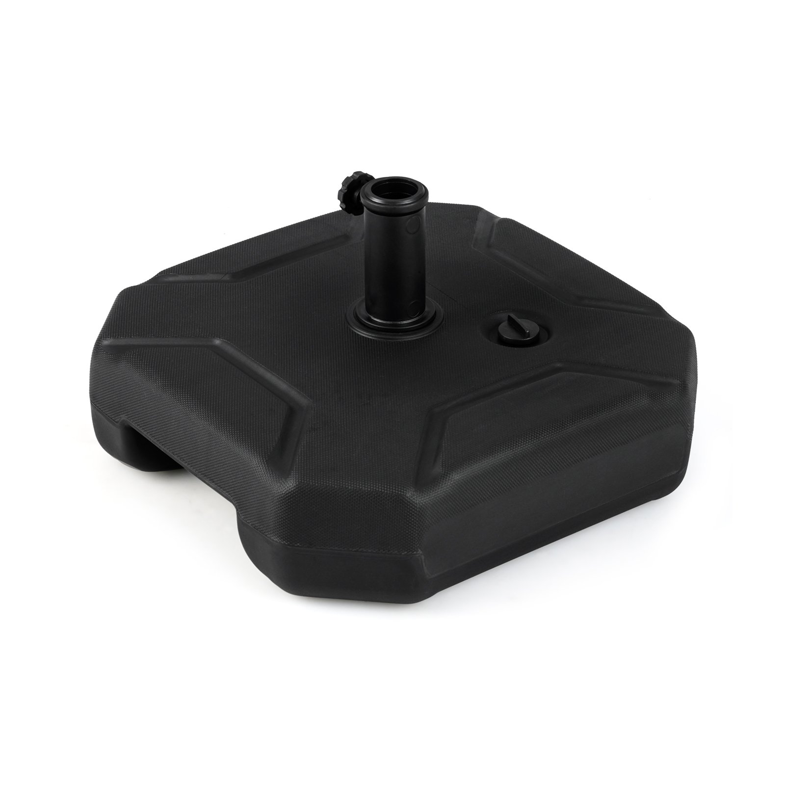 Let the patio umbrella stand provide a reliable anchor for your patio umbrella! The fillable umbrella base with weighted design improves stability. The large capacity reservoir allows you to fill it with up to 17.5 kg water, 30 kg sand,40 kg wet sand. Crafted from waterproof HDPE, the umbrella base stand can remain outdoors year-round without deterioration and fading. Also, there are non-skid design to further increase the stability. The heavy duty umbrella holder is compatible with umbrella poles with a diameter of 38 mm and 48 mm, making it suitable for a wide array of umbrellas ranging from 180 -240 cm, including both market and patio table umbrellas. Featuring cut-out handle, the lightweight umbrella stand can be transported to anywhere with ease. Bullet Points: Customizable Weight System: Thanks to the fillable reservoir, you can fill the base with up to 17.5 kg of water, 30 kg of sand, or a mixture of both up to 40 kg, depending on the specific needs. This versatility ensures your umbrella stands steadfast against breezy conditions. Superior Material for Durability: The umbrella base is crafted with HDPE material, which is highly regarded for its resistance to wear and fading. Furthermore, the selected material is weather-proof, ensuring that the fillable umbrella stand endures through a variety of weather conditions. Recommended Umbrella Size: The plastic umbrella stand includes a universal pole holder that features an adjustable knob, allowing the base to accommodate pole diameters ranging from 38 mm to 48 mm and fit most 180-240 cm patio table umbrellas. Note, the umbrella is not included. Hassle-free Installation: The assemble process of the heavy-duty table umbrella base is simple without any tools, which is labor-saving. You only need to put the tube into the hole, then fill it with water or sand and tighten the cap, finally insert and tighten the umbrella pole. Portability & Diverse Usage: The lightweight market umbrella base with cut-out handle allows for easy transportation. Hence, it is an ideal choice not only for personal use but also for commercial environments such as cafes and markets.
