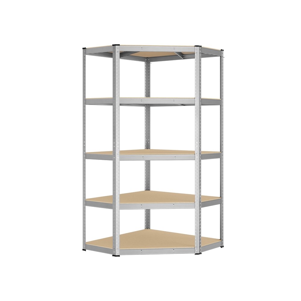 SONGMICS Corner Shelf 5-Tier, Garage Shelving, Heavy Duty Metal Shelving Units, for Garage, Storage Room, Warehouse, Loads 875 kg, Ink Black and Natural Beige GLR080B01