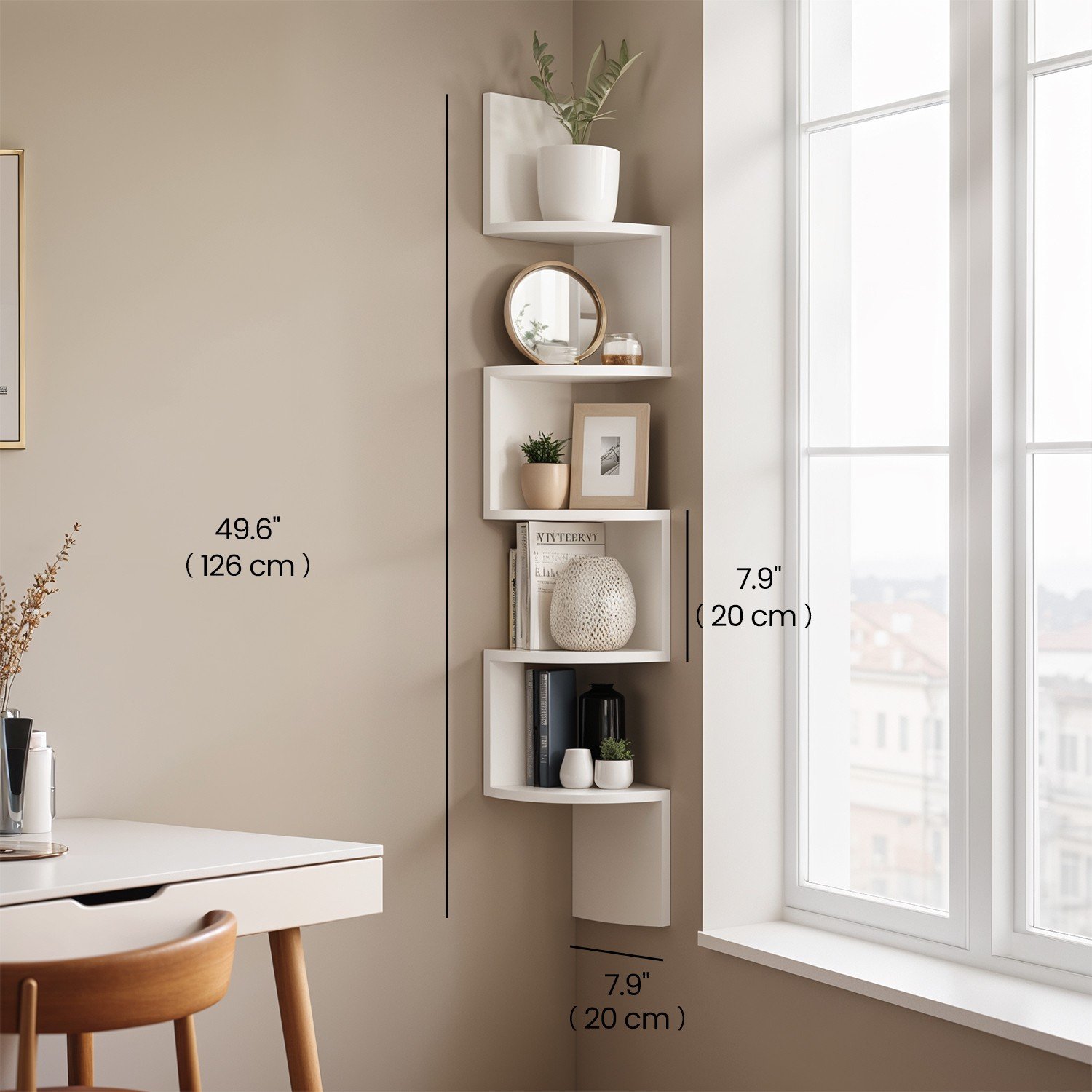 5-Tier Floating Corner Shelf, Wall Mounted Bookshelf