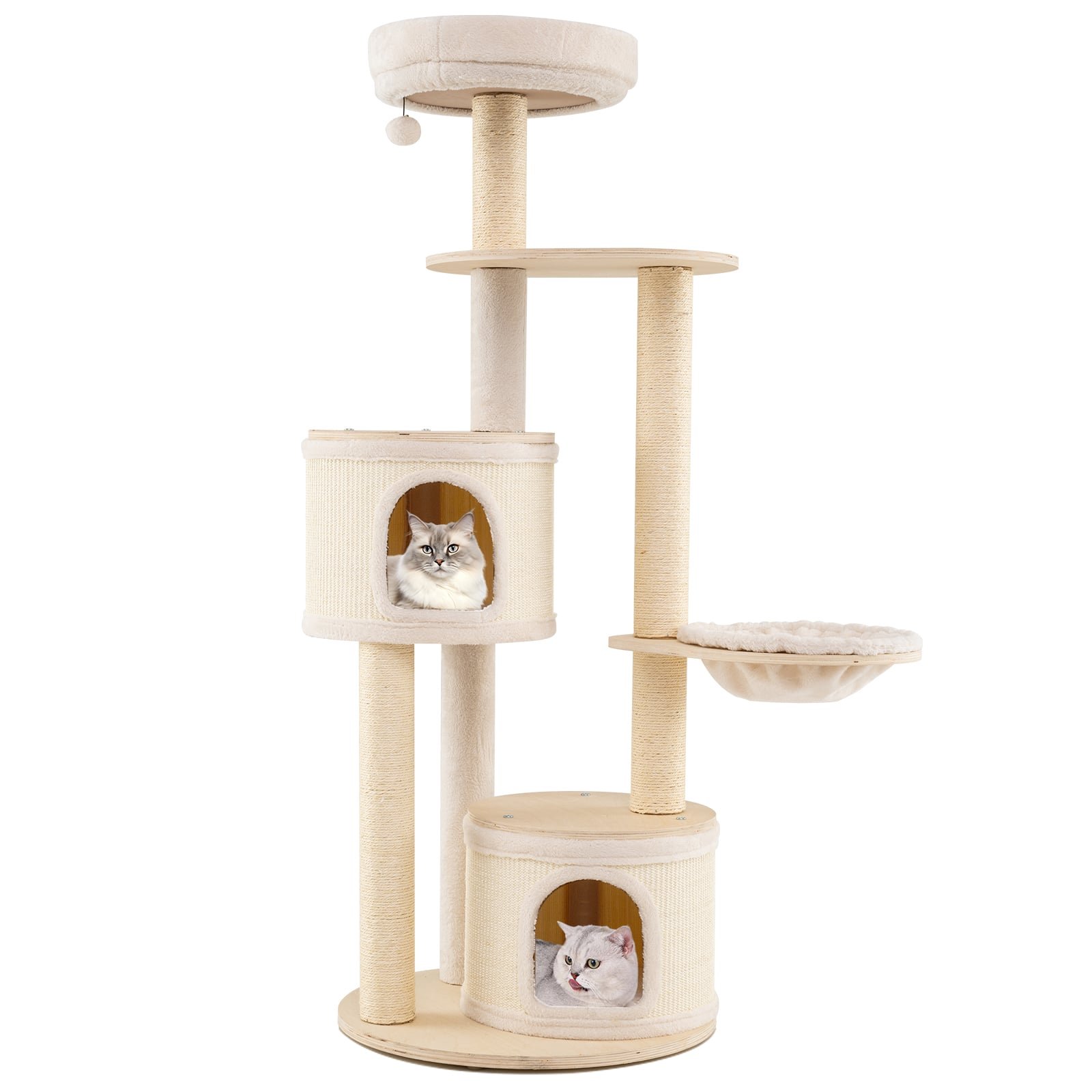 6-level Wooden cat tree with cat condo and sisal scratching posts for indoor-Natural