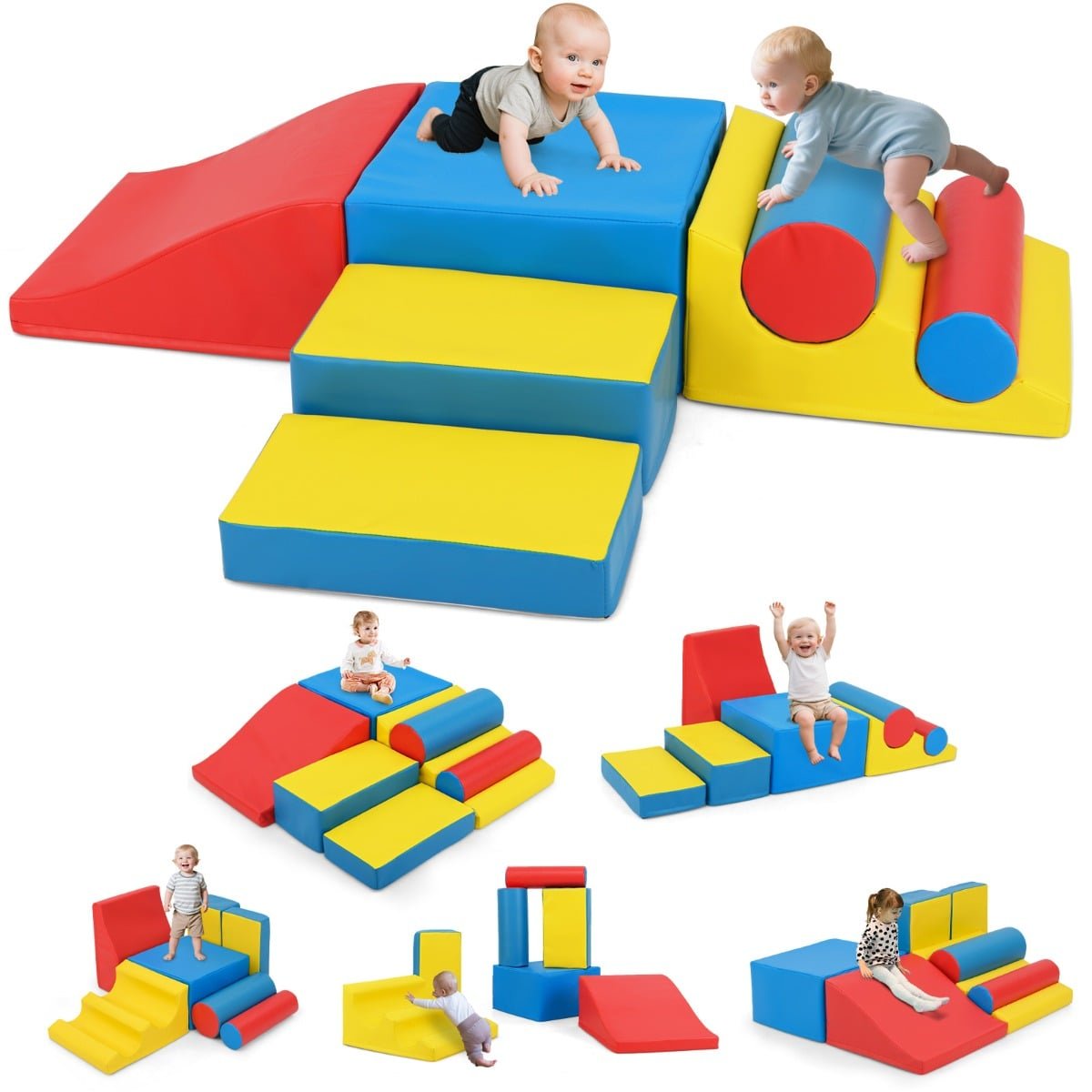 7 Pcs Toddler Climbing Blocks Soft with Waterproof PU Leather Cover for 1+ Baby