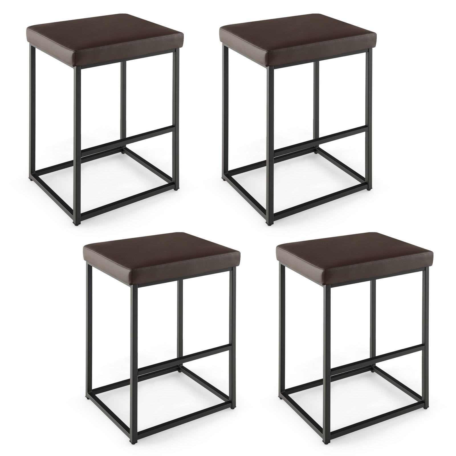 76 cm Barstools Set of 4 with PU Leather Cover and Footrest
