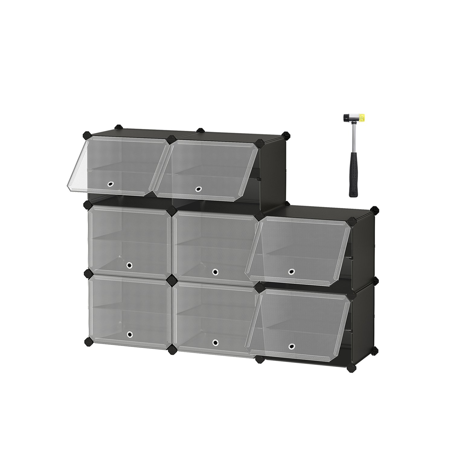 SONGMICS Interlocking Shoe Rack, Plastic Shoe Storage Cabinet, 8-Slot Modular Storage Organiser Unit, 30 x 40 x 30 cm for Each Slot, with Doors, Steel Frame, Plastic Panels, Black LPC034B01