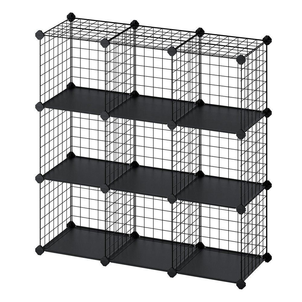 9-Cube Wire Grid Storage Rack, Interlocking Shelves with Metal Mesh and PP Plastic Panels