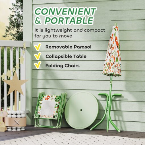The AIYAPLAY kids folding table and chairs set is greatt for playdates, outdoor fun and providing your little ones with a personal space to relax. It features a hole in the centre for a parasol, which can be adjusted in height, offering cooling shade on hot summer days. Suitable for ages 2-5, its cute fox design design is sure to capture their imagination and add a playful touch to any setting. When playtime is over, simply fold it away for compact storage, keeping it ready for next time.