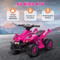 Turn any place into an adventure with the AIYAPLAY 6V kids ATV! This electric four-wheeler zips along at a safe 2.5km/h, great for ages 2-6 years. Three included songs add to the fun, making every ride joyous. Suitable for asphalt, brick or cement surfaces, this kids ride-on quad brings enjoyment for every little rider.