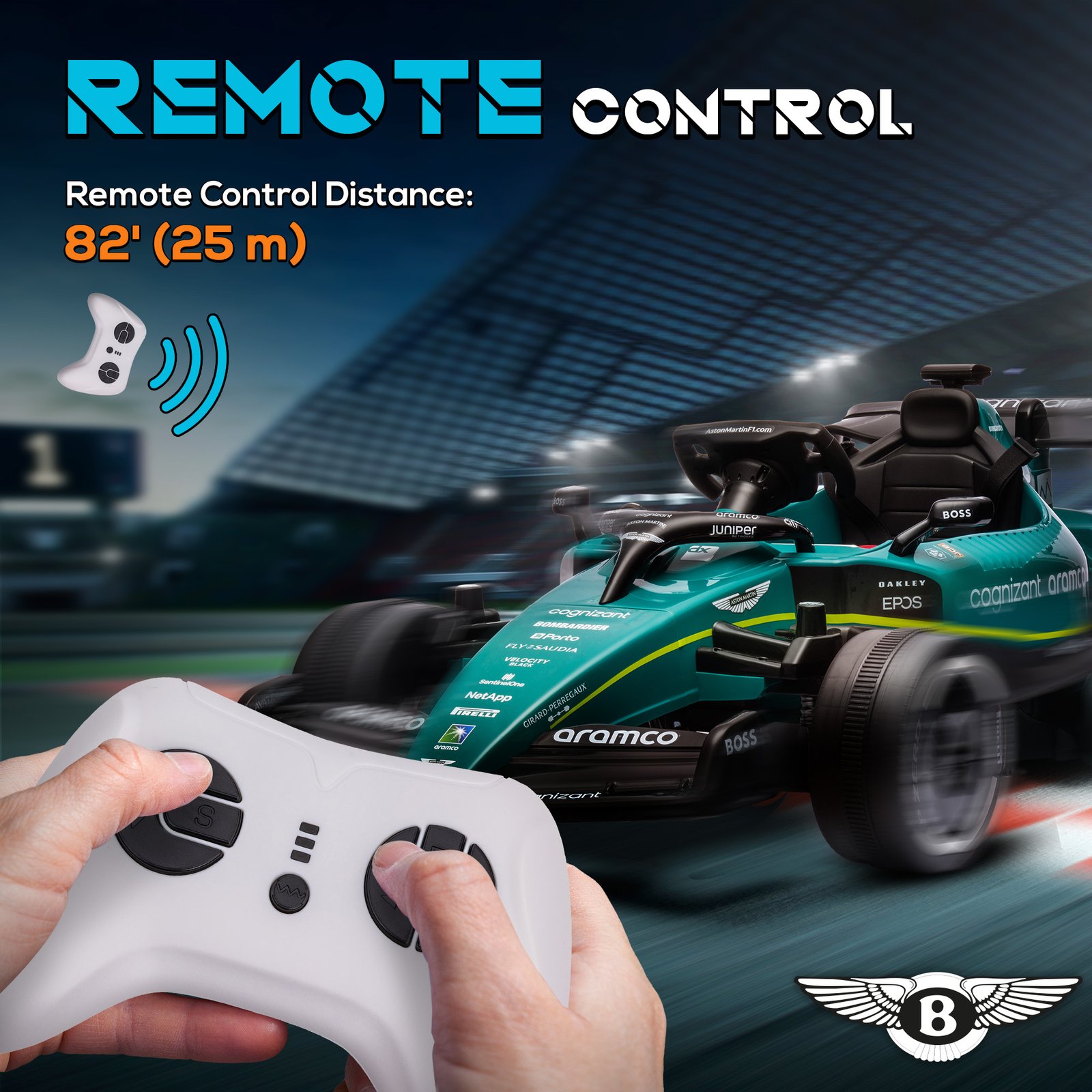 AIYAPLAY Aston Martin Licensed 12V Kids Ride on Racing Kart w/ Bluetooth, 4 Suspension Wheels, Music Lights Horn, Green