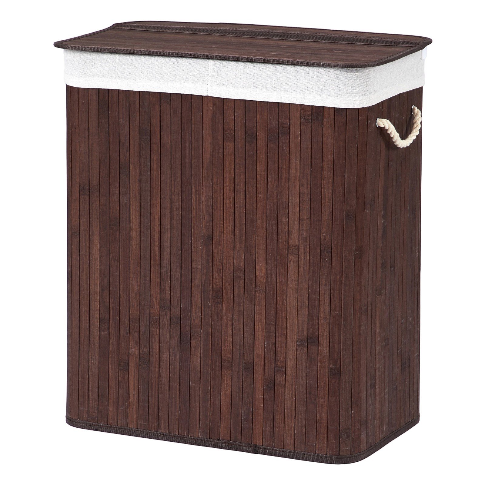 Bamboo Laundry Basket, 2 Sorting Compartments, Removable Bag