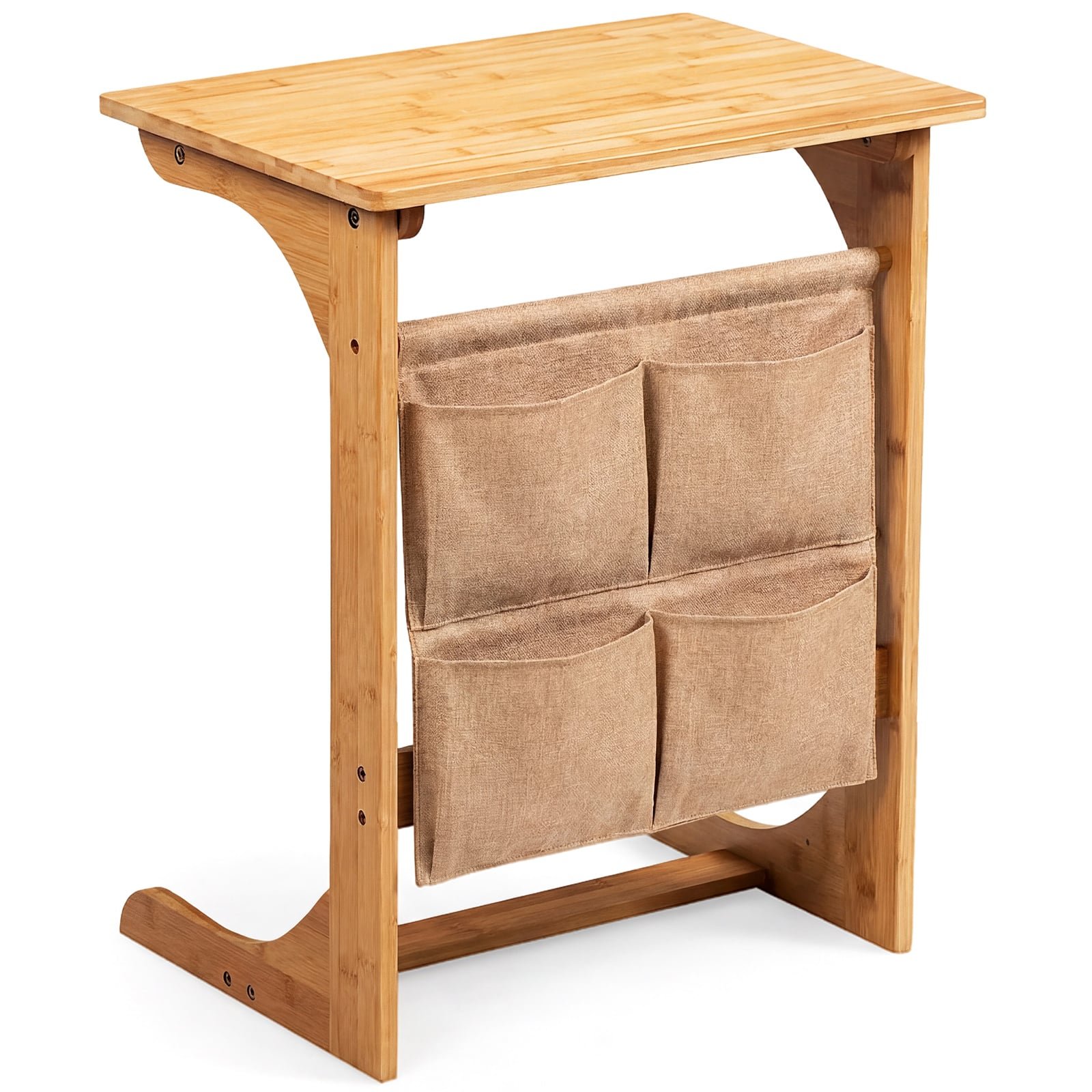 Bamboo Side Table C-Shaped Sofa End Table Laptop Desk-Natural