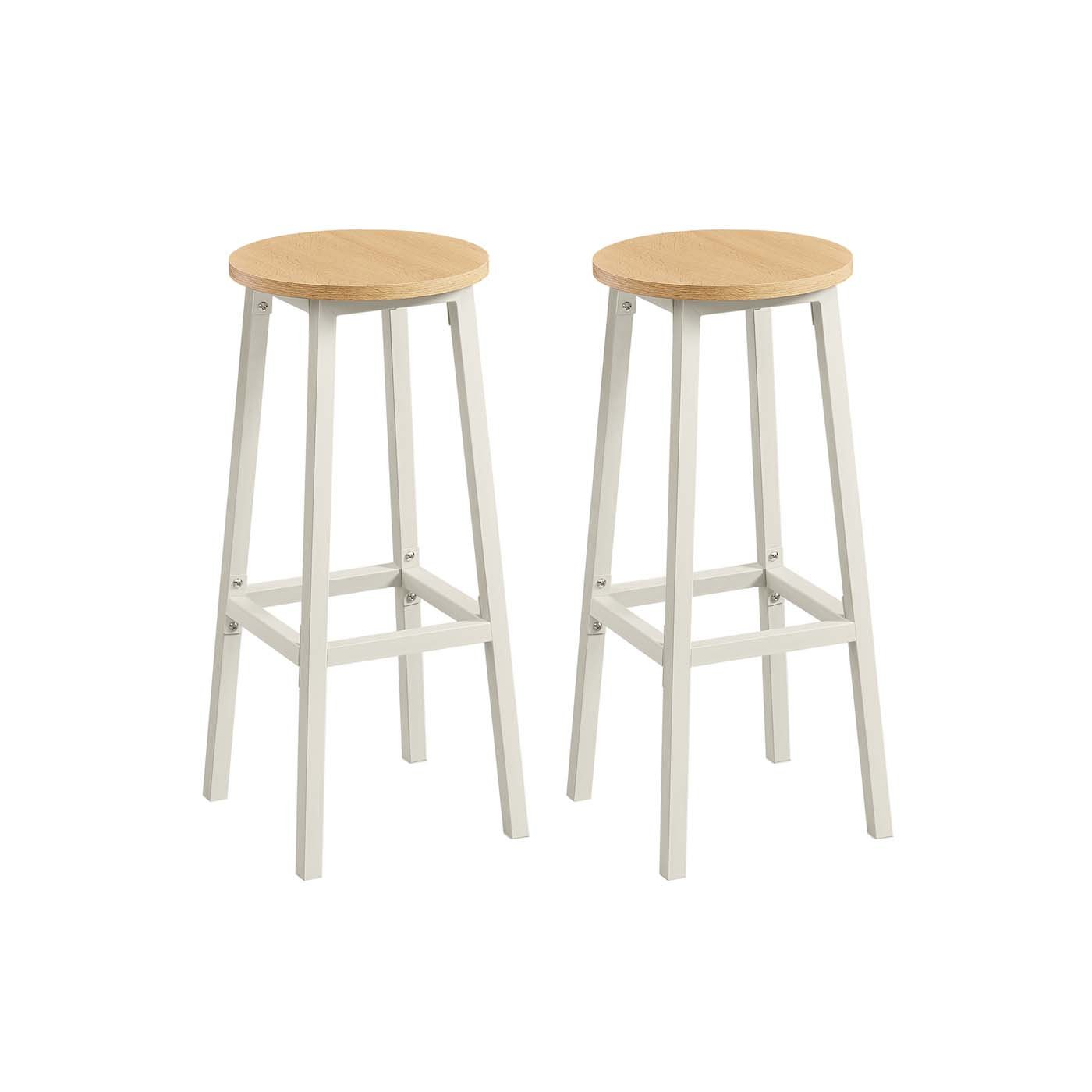 Bar Stools Set of 2 Kitchen Stools 74 cm High Golden Oak and White