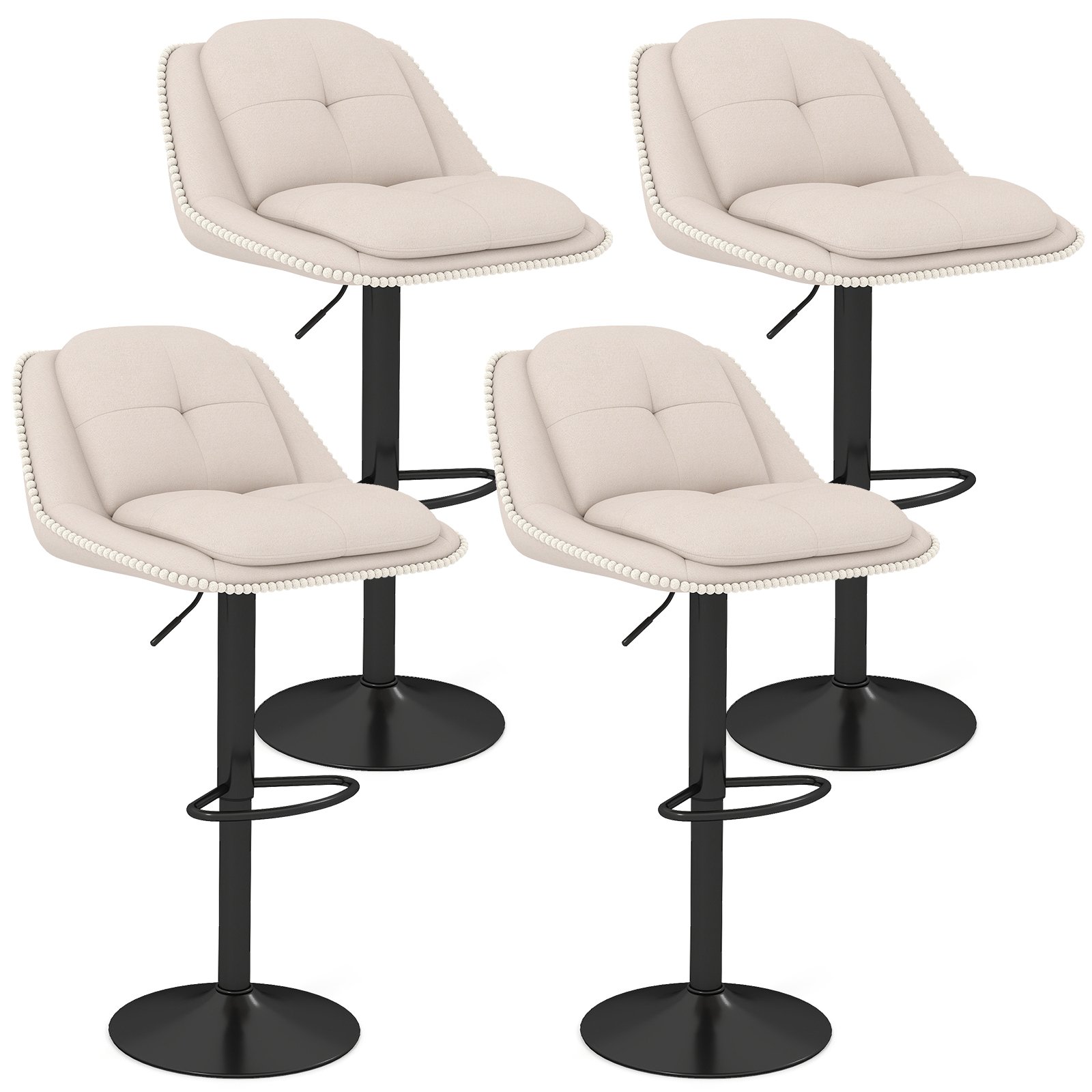 Bar Stools Set of 4 Modern Adjustable Chenille Upholstered Barstools-White