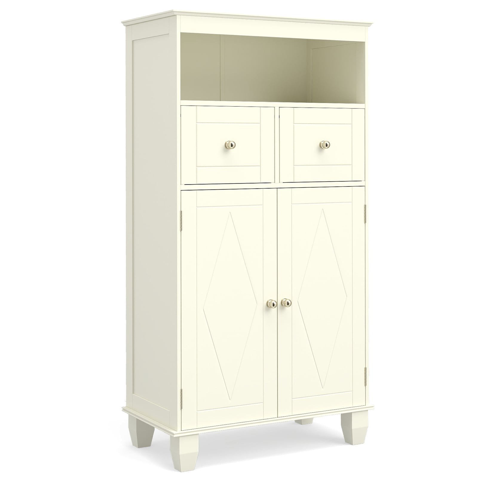 Bathroom Floor Storage Cabinet with Doors and Shelves-Beige
