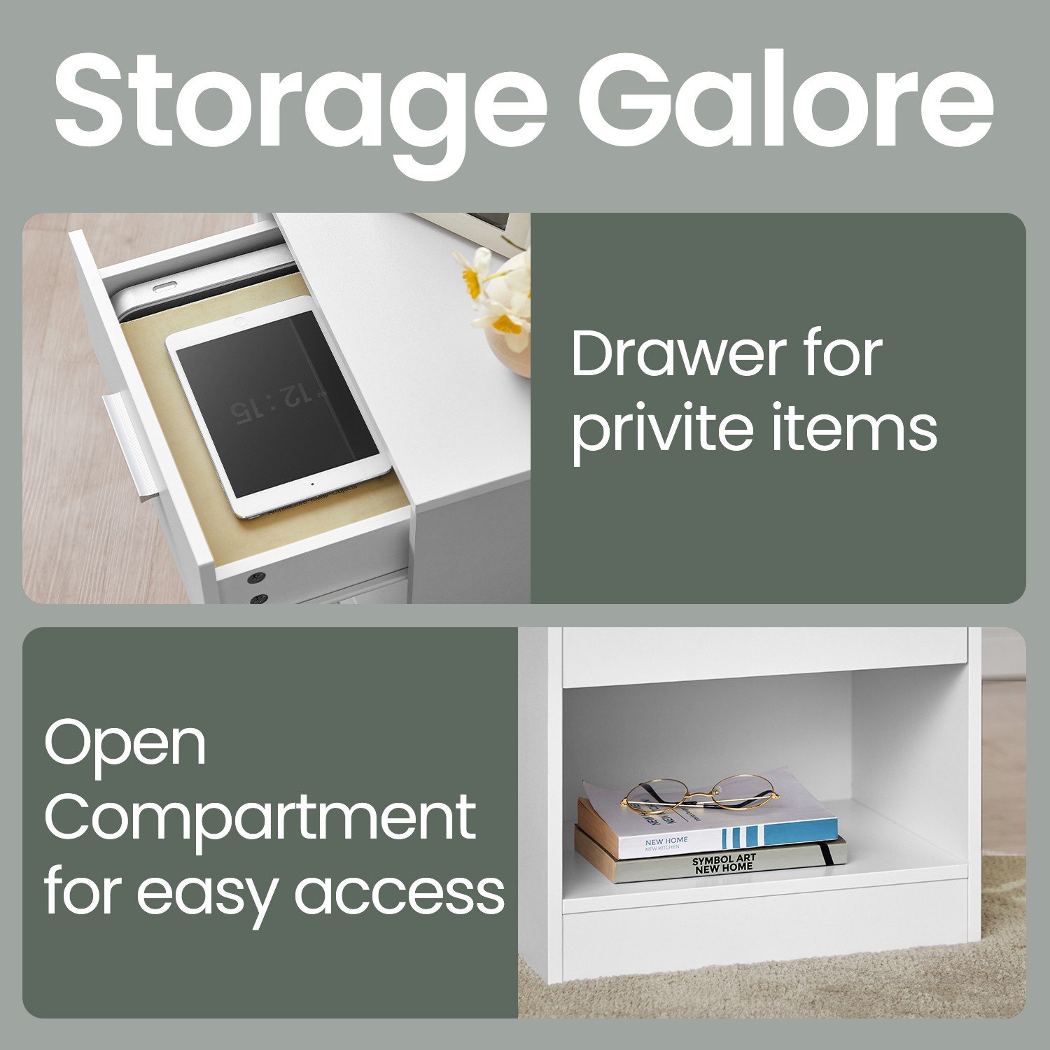 Bedside Table, Side Table with Drawer, Handle