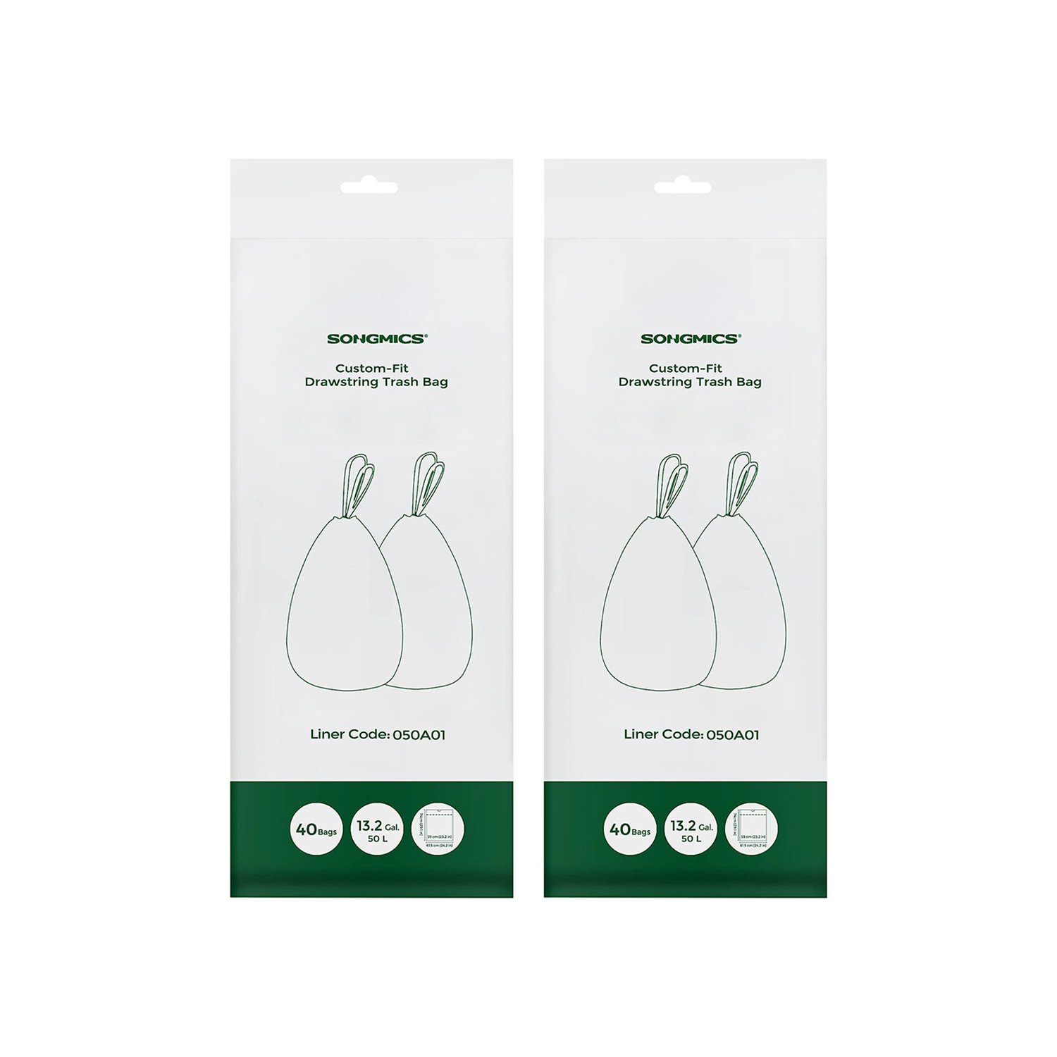 SONGMICS Bin Liners, Bin Bags, Drawstring Rubbish Bags for 50L Kitchen Bins, Liner Code 050A, 1 Rolls, 40 Pieces