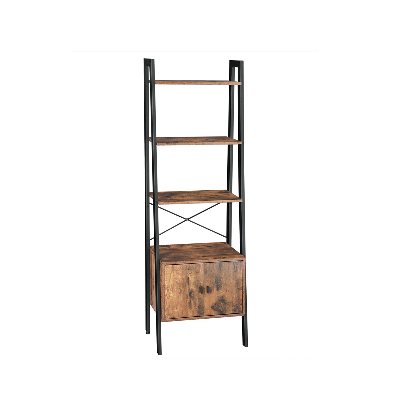 VASAGLE Ladder Shelf, Bookshelf with Cupboard, Living Room Shelf, 4 Shelves, Stable Steel Frame, Bedroom, Office, 56 x 34 x 173 cm, Industrial Design, Rustic Brown LLS47BX