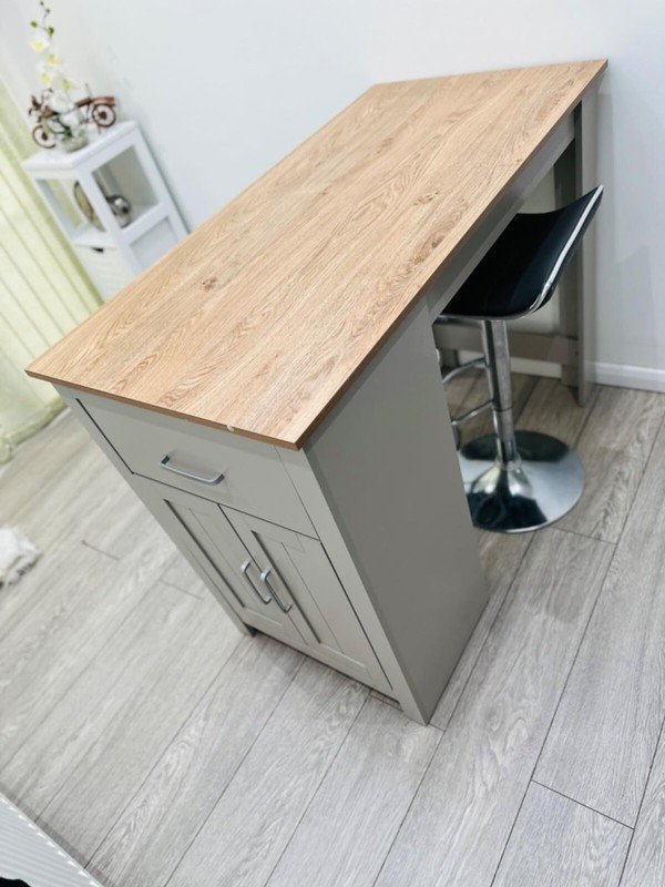 Narrow Design yet Large Capacity: This counter height bar table features a narrow design that takes up little floor space. Nevertheless, it still boasts a large storage capacity. The pull out drawer as well as the 2-tier storage cabinet holds dining supplies for easy access so that you can enjoy meals without interruption.