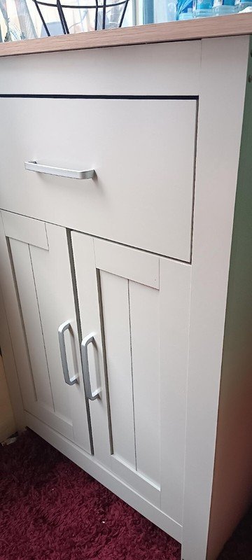 Removable and 3-level Adjustable Shelf: Behind the doors, you are able to find a storage shelf. The shelf is 3-position adjustable (6.5 cm as an increment) to fit items of different heights. Furthermore, you can remove it to fit higher objects.