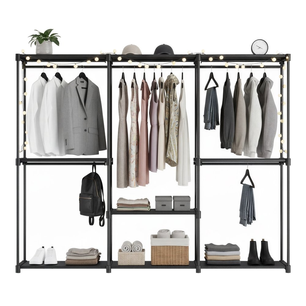 Wardrobe Closet Organizer with Shelves, Freestanding Clothes Rack
