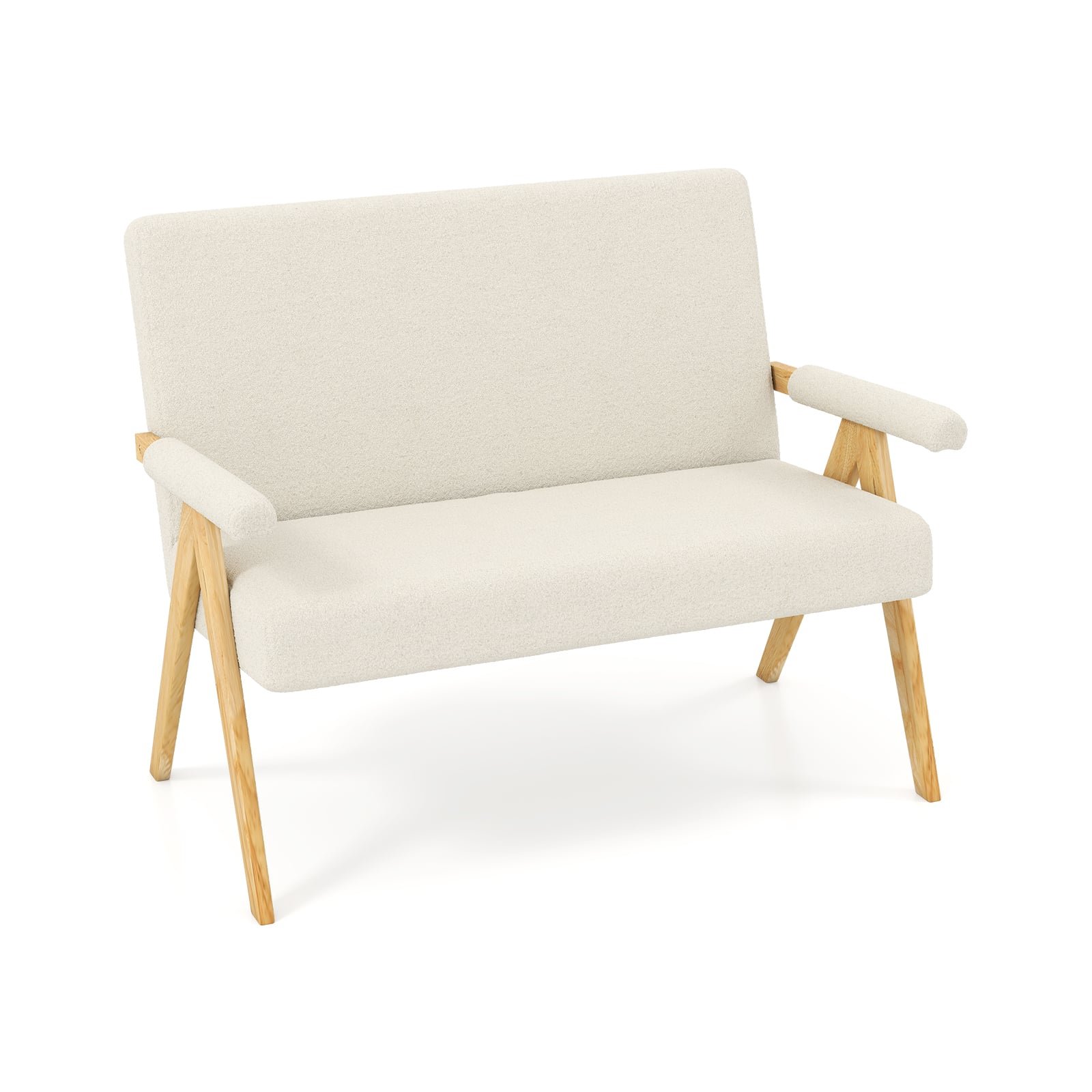 Comfy Upholstered Sherpa Couch with Armrests and Wooden Legs-Beige