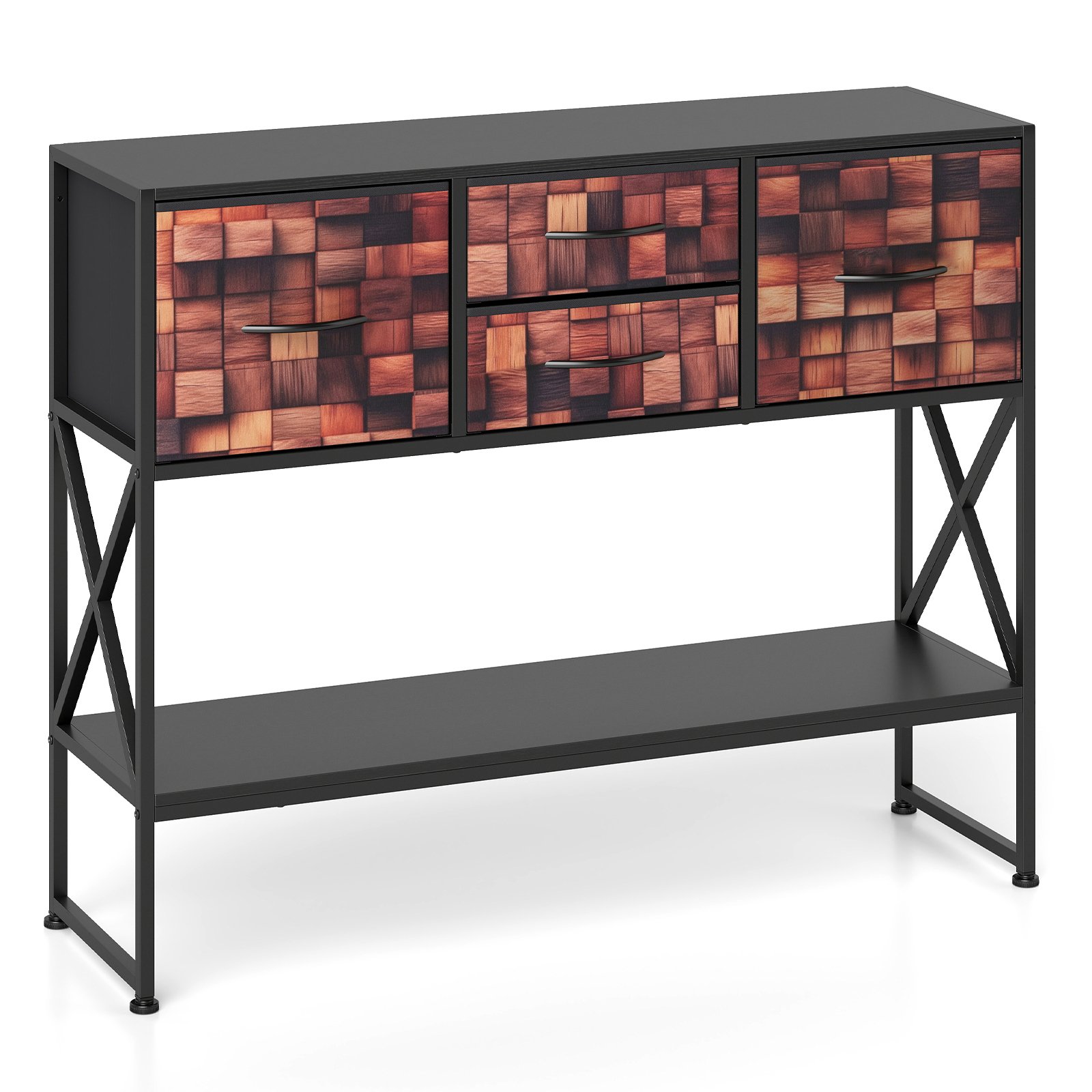 Console Table with 4 Fabric Drawers Shelf and Metal Frame-Coffee