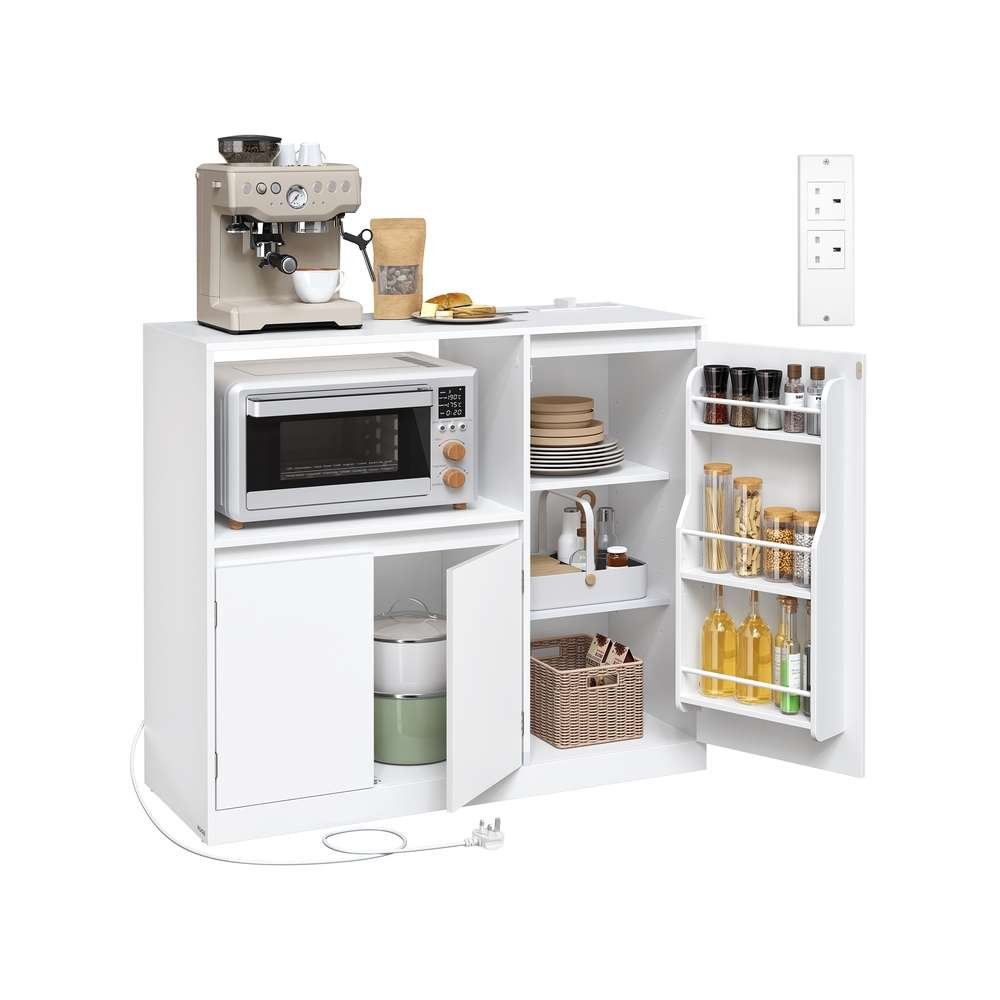 VASAGLE CUSTOS Collection – Kitchen Sideboard, Storage Cabinet with Worktop, Microwave Stand, Open Compartment, 3 Doors, Adjustable Shelves, Cloud White BBK373WB02