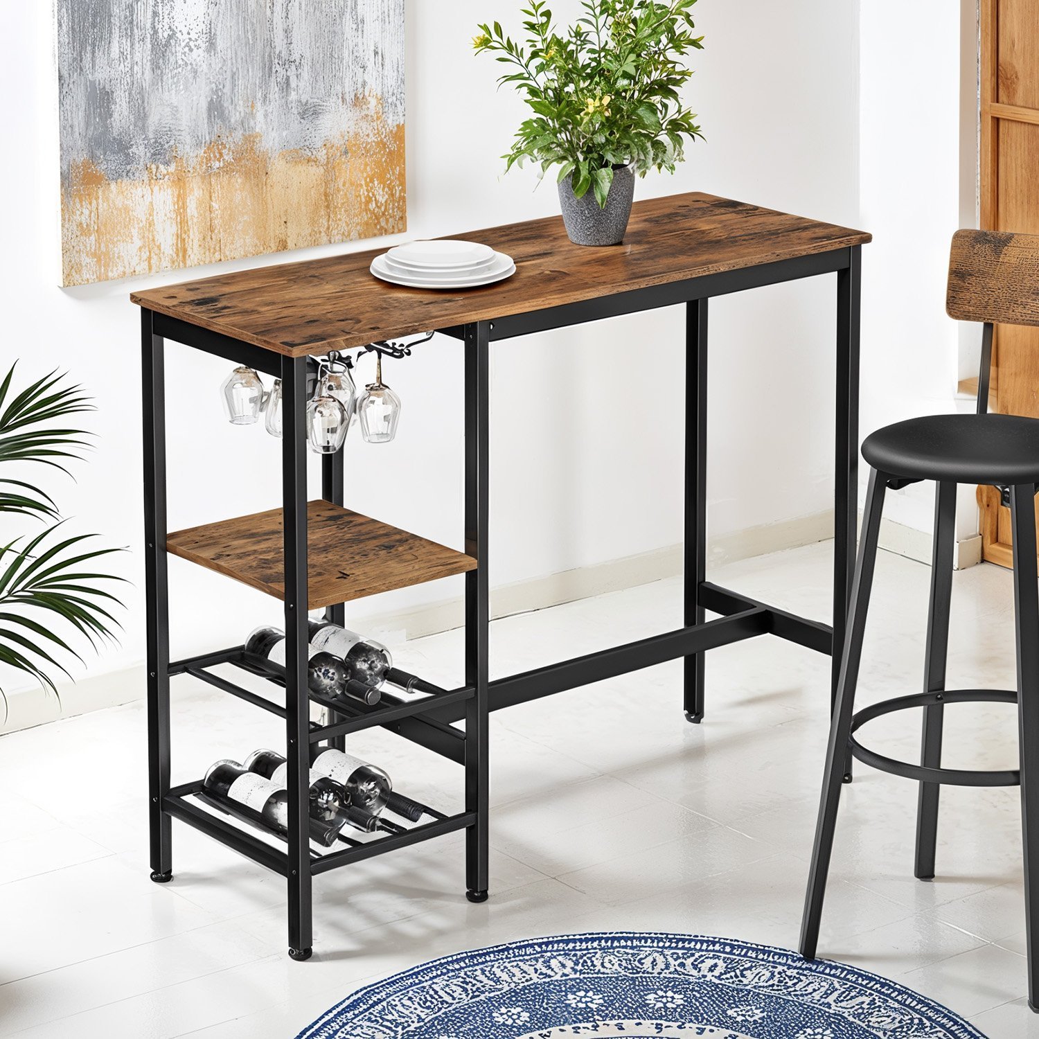 VASAGLE High Table, Dining Table, Bar Table, with Wine Glass Holder and Bottle Rack, for Living Room, Kitchen, 110 x 40 x 90 cm, Industrial, Rustic Brown and Black LBT013B01