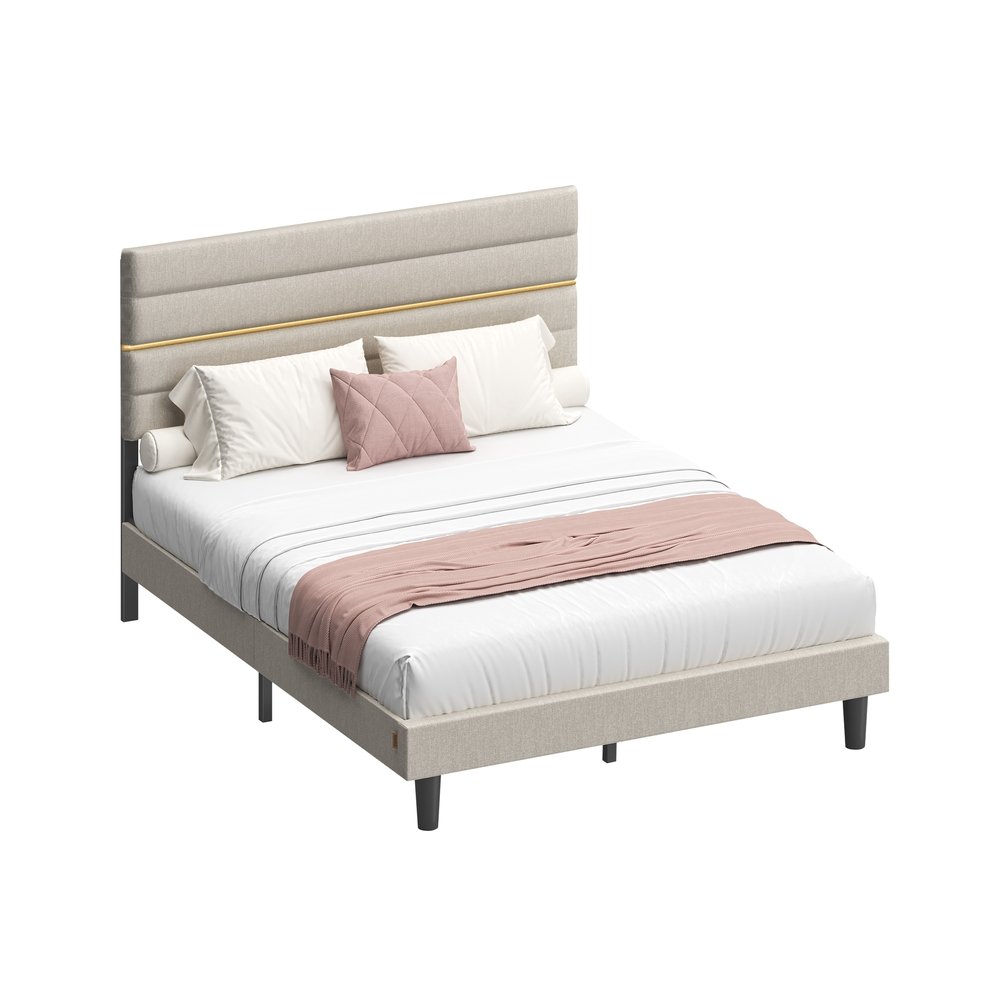 Double Bed frame with adjustable upholstered headboard Cappuccino Beige