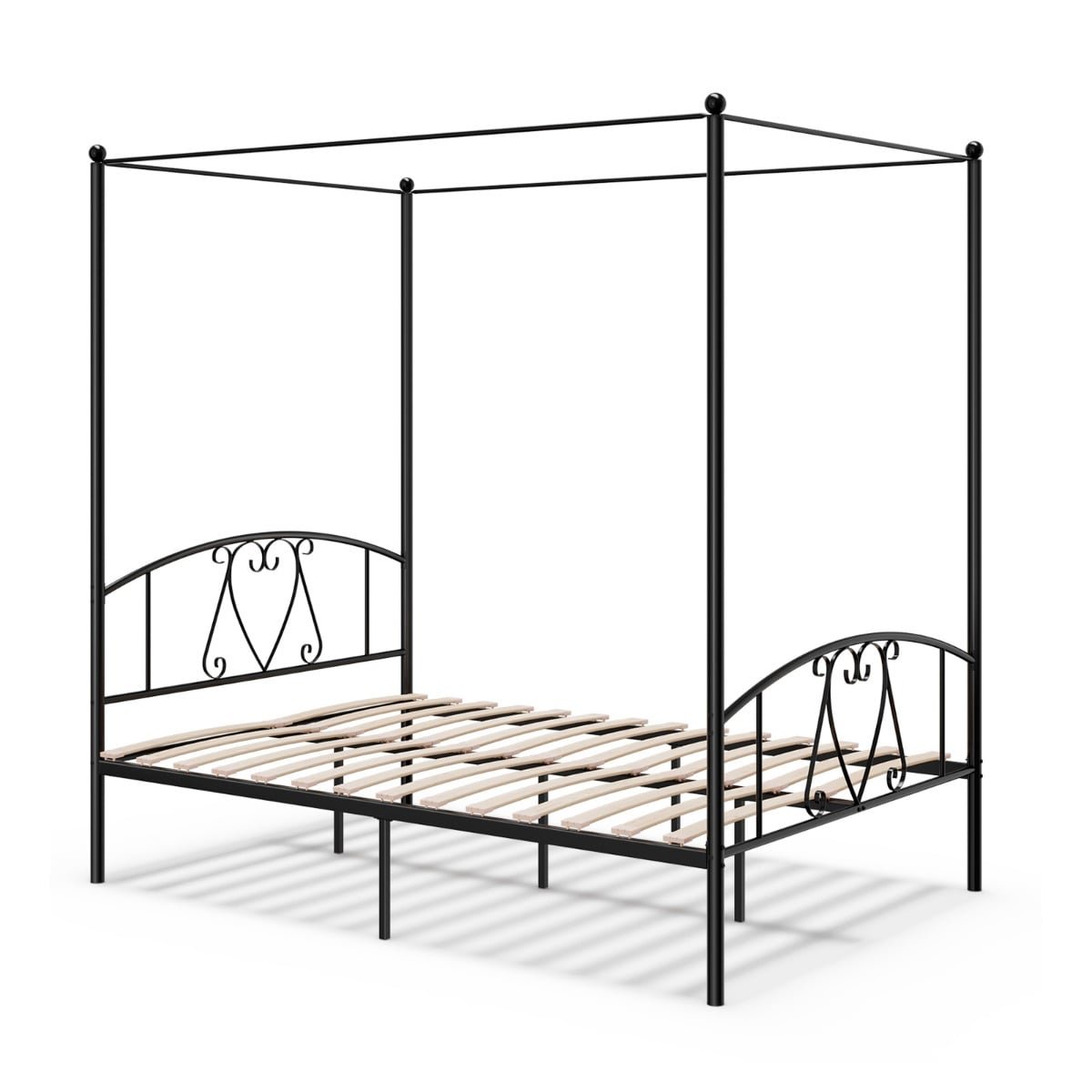 Colour: Black Material: Metal, Plywood Overall Dimensions: 198 x 135 x 200 cm (L x W x H) Headboard Height: 91 cm Footboard Height: 76 cm Space Between Bed and Floor: 31 cm Fit Mattress: 190 x 135 cm (L x W) Space Between Slats: 8 cm Weight Capacity: 300 kg Net Weight: 28.5 kg Box Qty:1(May vary by batch)Package Includes: 1 x Canopy Bed Frame 1 x Instruction Manual