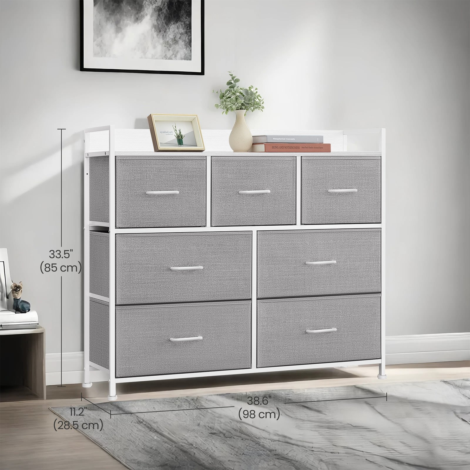 Dresser Cabinet with 7 Fabric Drawers, Metal Frame, Storage Organizer for Bedroom, Grey and White