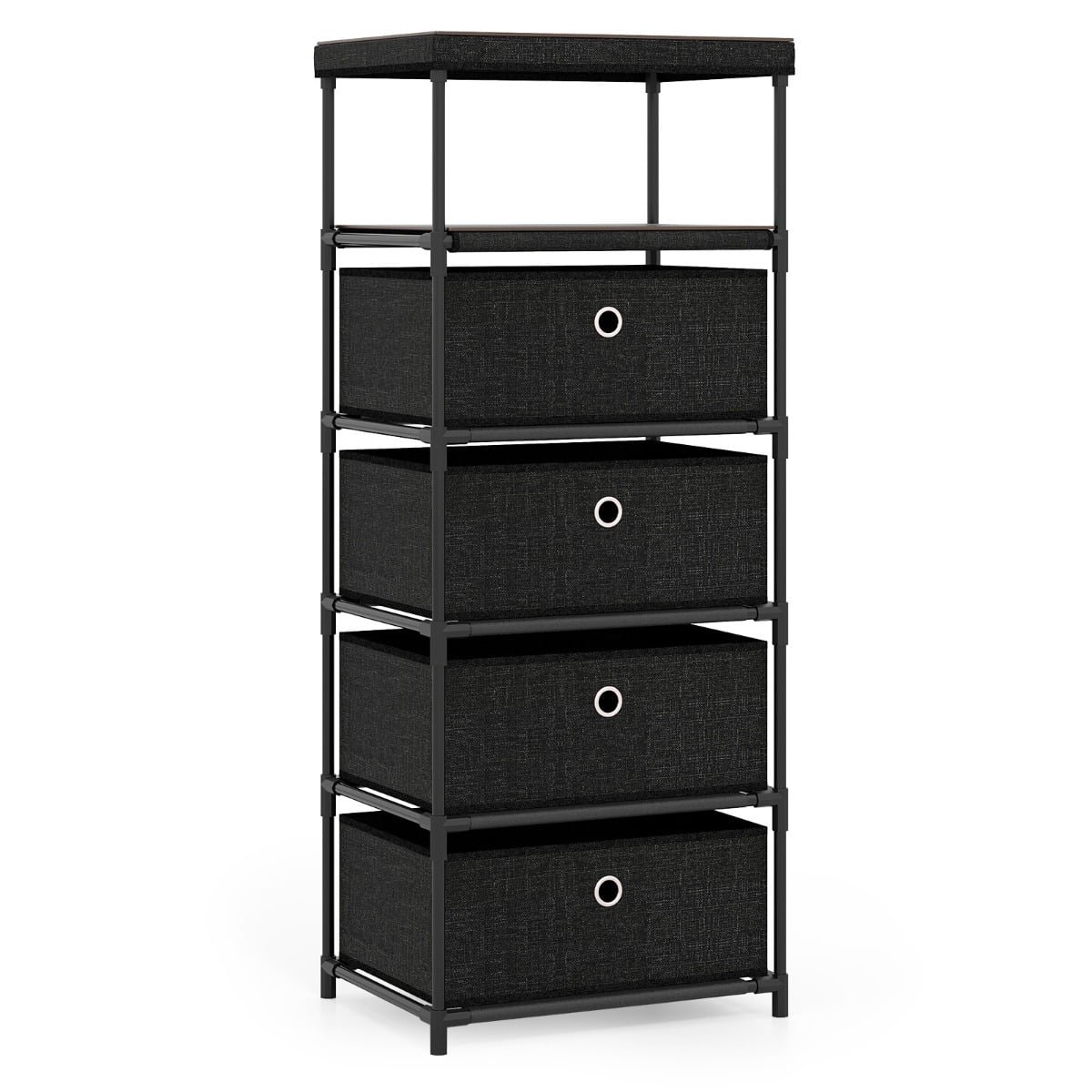Dresser with 4 Drawer Wood Top and Metal Frame-Black
