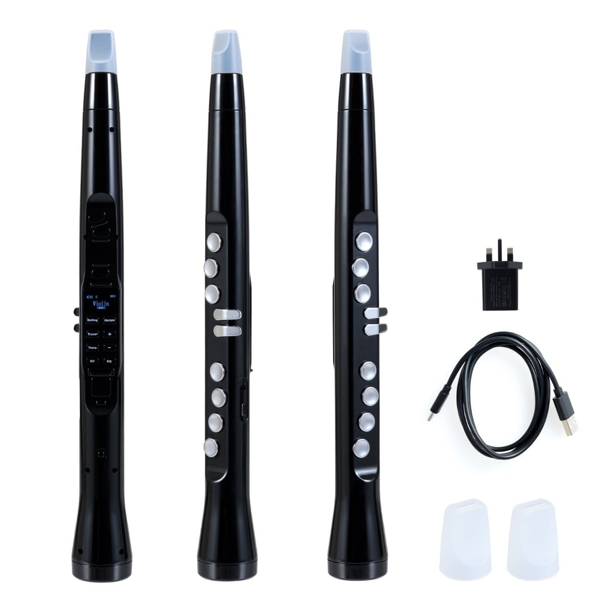Colour: Black Material: ABS Overall Dimensions: 4.5 x 42 cm (Dia x H) Net Weight: 0.3 kg Box Qty: 1(May vary by batch) Package Includes: 1 x Electronic Wind Instrument 2 x Mouthpiece Cover 1 x Type-C Charging Cable 1 x Power Adapter 1 x Storage Bag 1 x Instruction Manual
