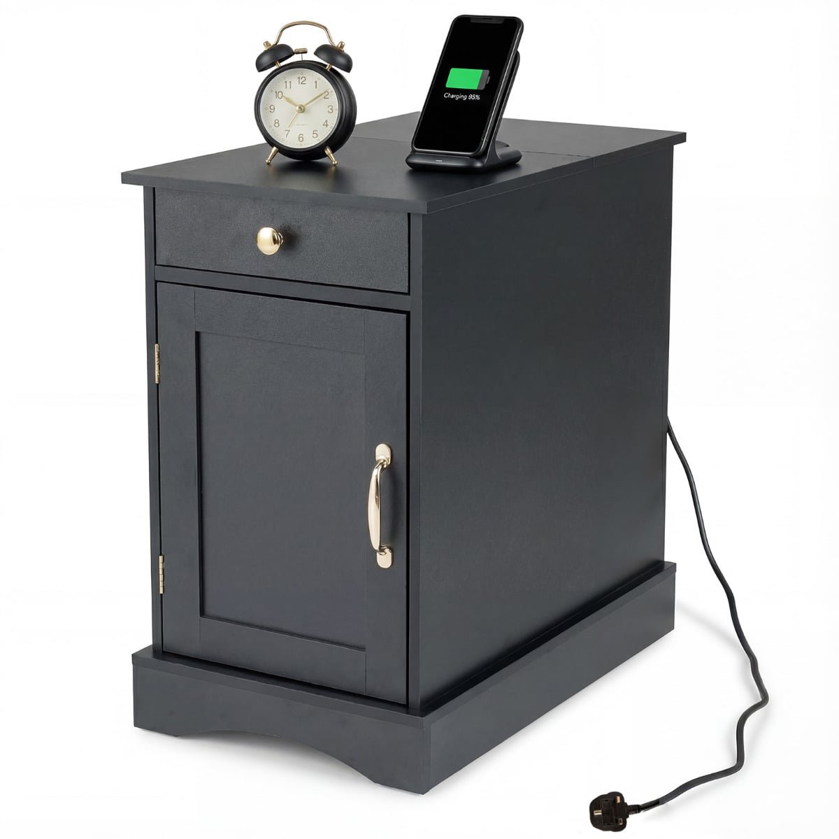 End Table Narrow Nightstand Bedside Table with Charging Station-Black