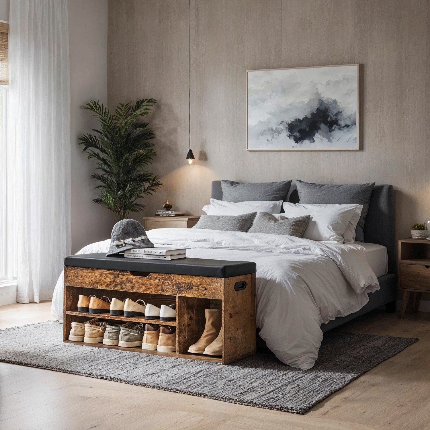 Entryway Storage Bench with Hidden Compartments, Padded Seat Shoe Organiser, for Bedroom, Brown