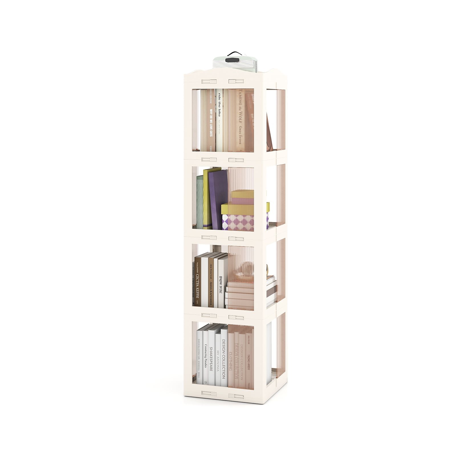 Foldable Rotating Bookshelf 4-Tier Revolving Bookshelf Tower-White