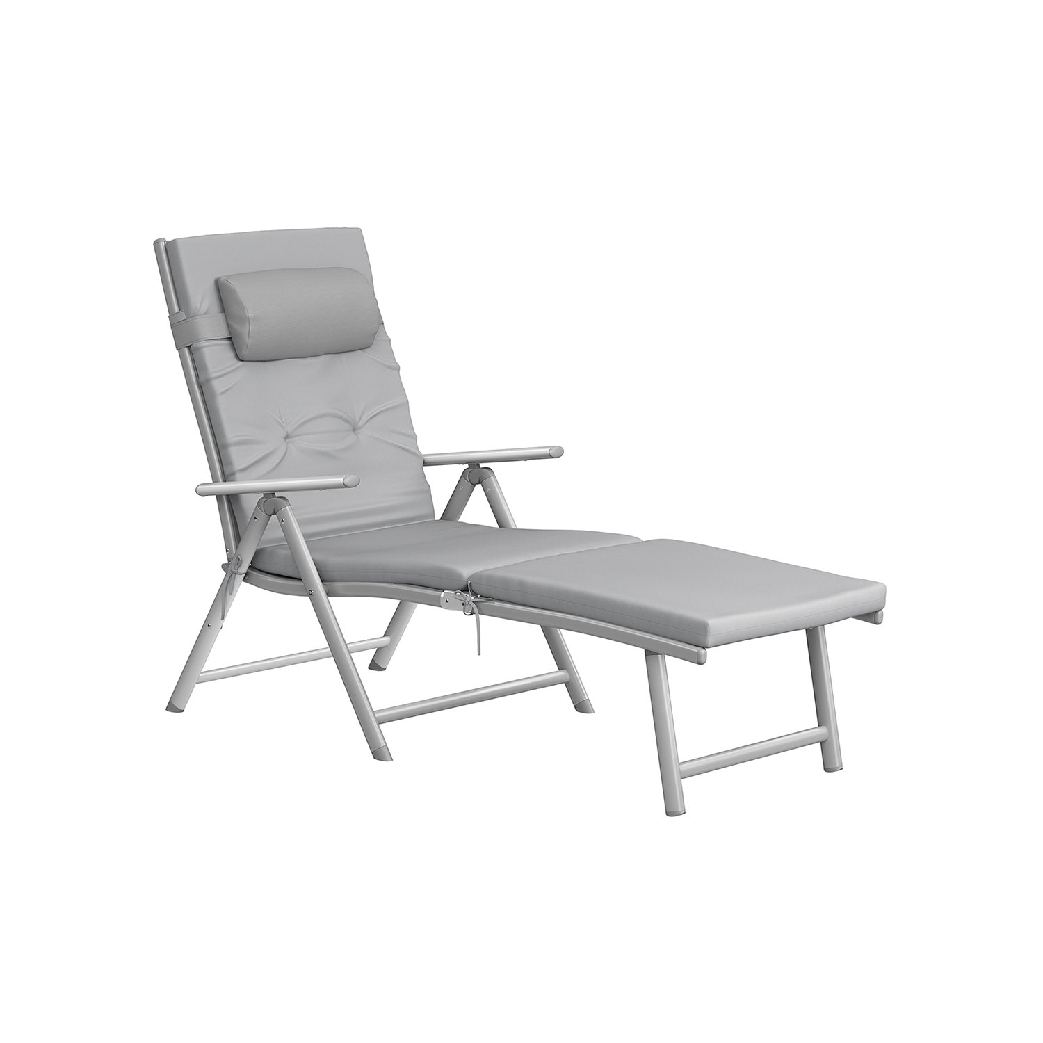 SONGMICS Folding Sun Lounger with 6 cm Thick Mattress, Garden Chair, Removable Pillow, Aluminium Structure, Rust-Resistant, Breathable, Comfortable, Adjustable, Hold up to 150 kg