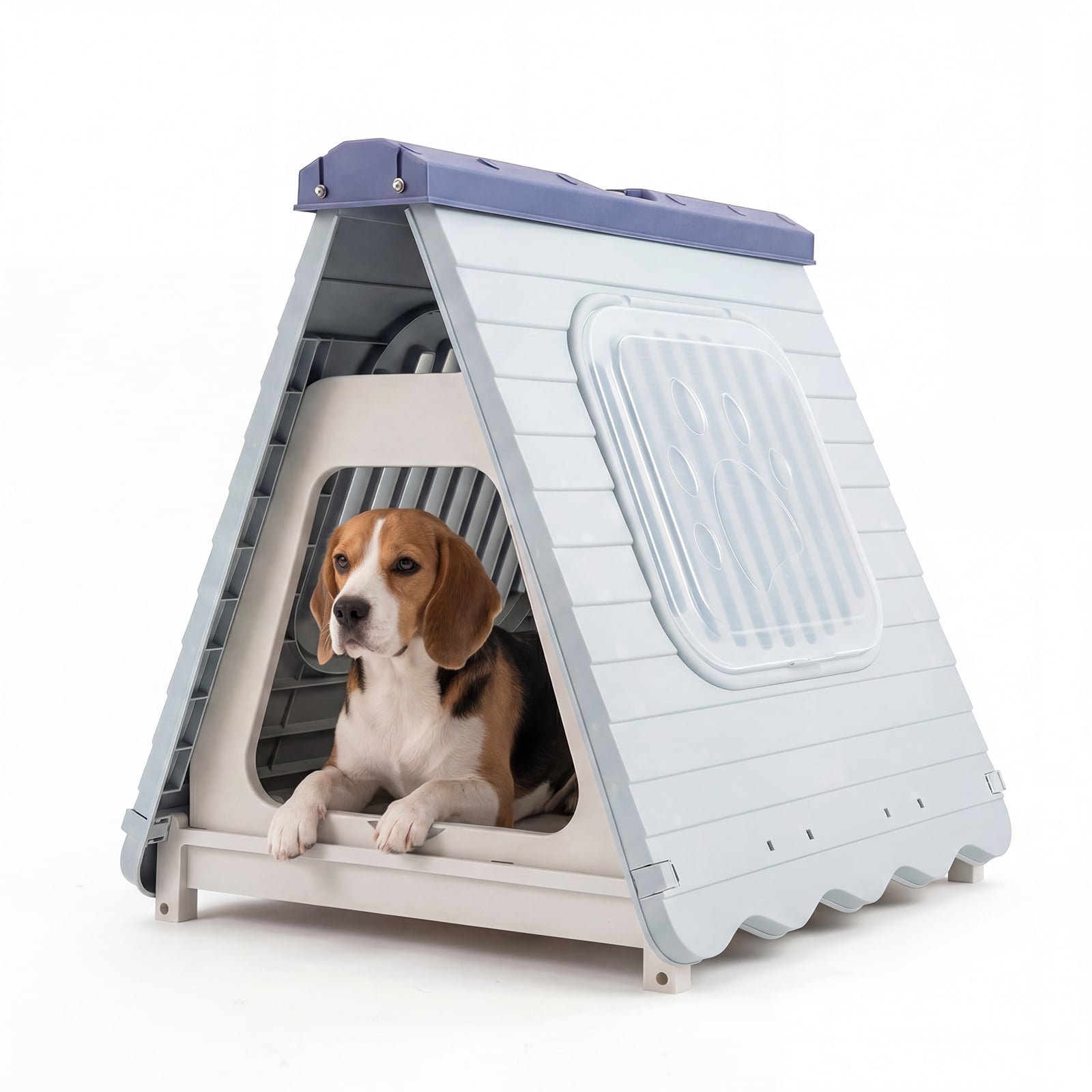 Folding Plastic Dog House with Lockable Flap Door Waterproof Pet Shelter-Blue