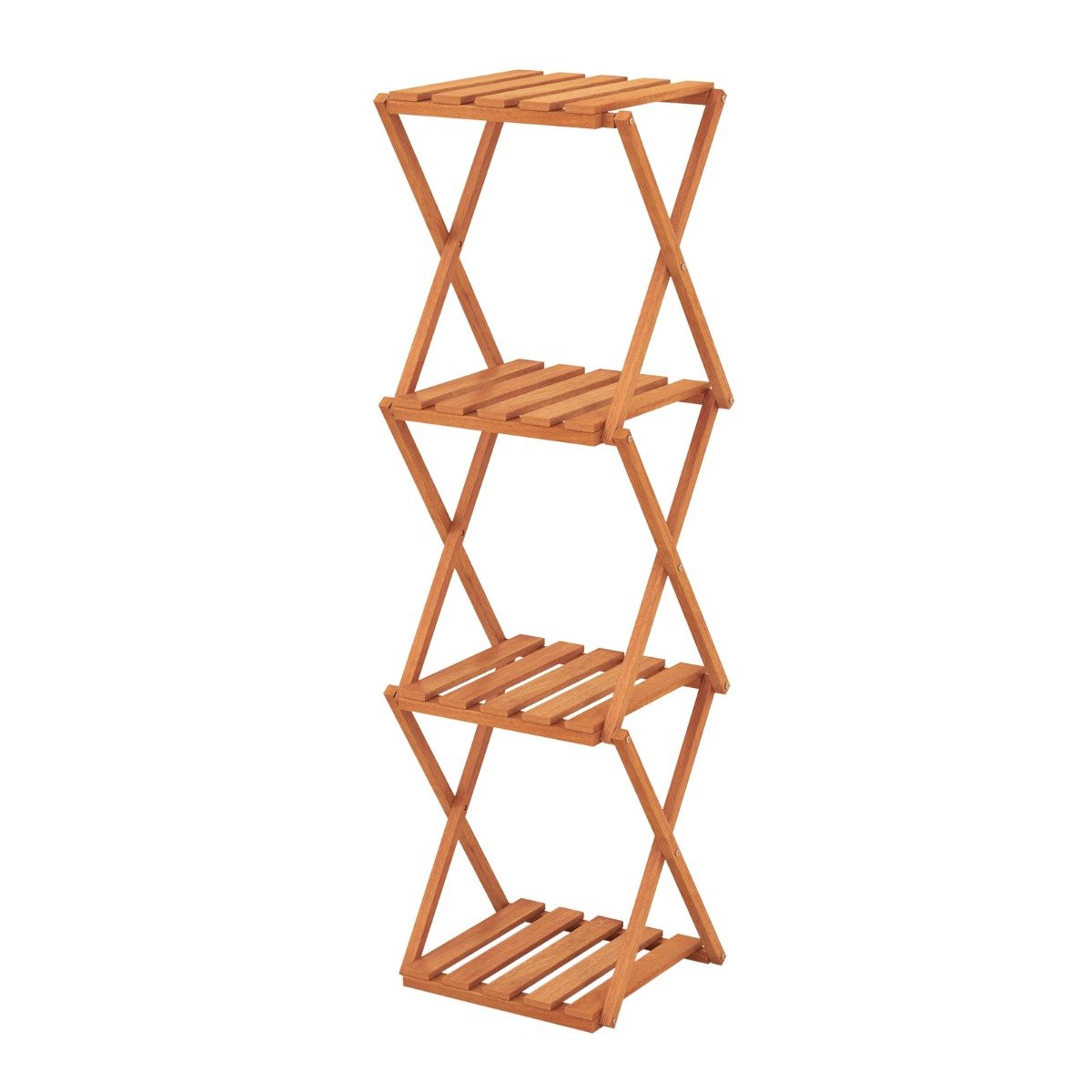 This wooden plant stand offers a 4-tier design with 39cm spacing between shelves, perfect for organizing books, plants, decorations, and shoes. Besides, the quick folding design saves space and is ideal for small rooms or apartments, while the selected wood material treated with teak oil ensures durability. With a stable X-shaped frame and stylish hollow slat design, this plant stand exudes sophistication in any living space. Hence, our wooden folding shoe rack is perfect for entryway, balcony, and living room. Selected Wood Material: Made of high quality wood material, this folding plant rack is sturdy and stable, and each shelf can load up to 5kg. Besides, the surface is pre-treated with teak oil for long time use. Large Storage Space: Boasting a 4-tier design, this plant stand keeps your items neatly organized and beautifully displayed. The 39cm space between shelves makes it suitable for accommodating your books, plants, decorations, and shoes easily. Quick Folding Design: This wooden storage rack can be folded into a compact size when not in use, which saves storage space and fits small rooms or apartments. Besides, it only weighs 4kg, which is easy to carry. Stylish Appearance and Wide Application: This shoe stand features a wooden frame with stylish hollow slat design, enhancing the ambiance while adding a touch of natural feeling to your space. It is suitable for various scenarios such as entryway, balcony, and living room. Stable Frame and No Assembly Required: This wooden plant holder is designed with a stable X-shaped frame as well as strong screw connections for a solid structure. Plus, it is no assembly required, which saves you lots of time and energy.