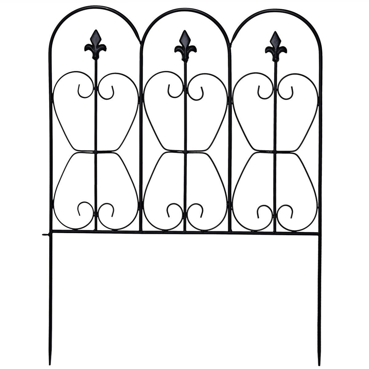 Add the garden fence around flowers and plants for protection. Made of thickened steel and coated with rust-proof paint, the garden fence is strong and weather-resistant to withstand long-term outdoor tests. This garden fence is equipped with five panels, which are independent of each other and can be freely combined into different shapes. Moreover, the side ring of each panel allows you to interlock easily. And the fence legs can be inserted into the soil to complete the installation. Combining the arched design and exquisite embellishment patterns, this fences have a charming appearance and will add extra beauty to your garden. If you are looking for a garden fence like this, do not hesitate to place an order! Flexible Installation Combinations: The garden fence is composed of five panels, each of which can be interlocked with a hole on the side to be tightly connected. And they can be expanded into various shapes according to your special purpose for this path fence, which can be a straight line, “L”, “O” or zigzag shape. Portable Fence with Detachable Design: Our garden fence employs a one-step disassembly design, which means that only the fence legs need to be removed from the ground. Beyond that, each panel can be separated independently so that you can split it for stacking storage, thereby minimizing space occupation. Stable and Durable Structure: Made of premium steel with rust-proof coating, the garden fence is weather-resistant and stable, making it suitable for long-term outdoor use. The fence is inserted into the soil to ensure that it penetrates firmly into the soil for better fixation. Multifunctional Fence: This fence size is scientific and can effectively protect your beloved plants from walking damage by children or pets. It is suitable as a decorative fence to be placed in a garden or lawn, or as a road edge for isolation and can even be converted into an animal barrier. Elegant Appearance for Decoration: Comes with arched craftsmanship, the elegant garden fence is harmoniously matched with the outdoor environment, adding a sense of fashion to your garden, terrace, balcony and courtyard. Meanwhile, the exquisite finish in the middle decorates the fence well.