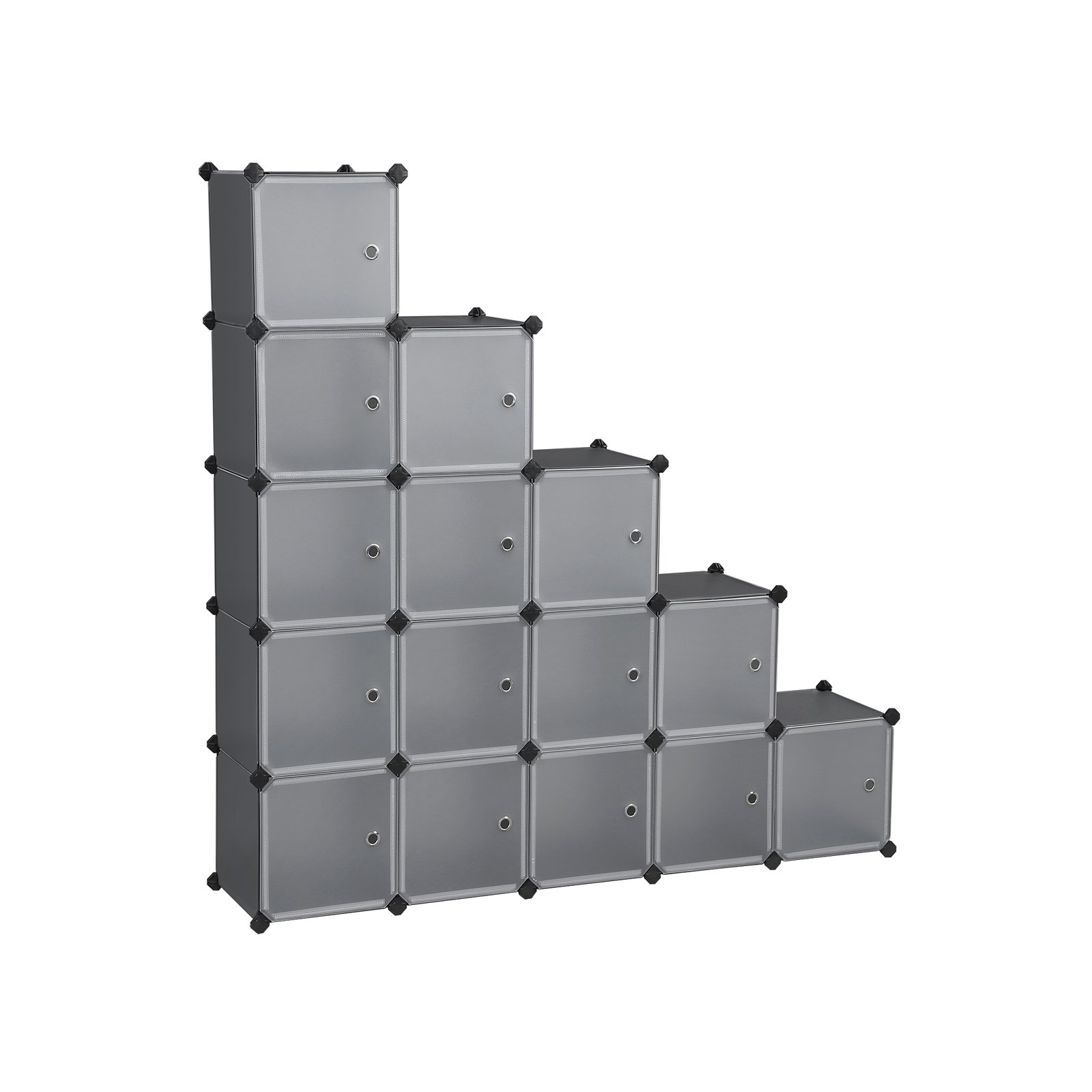 SONGMICS 15-Cube DIY Storage Organiser Unit, Plastic Closet Cabinet, Wardrobe, with Doors, for Clothes Shoes Toys Books, Easy to Assemble, Grey LPC443G01