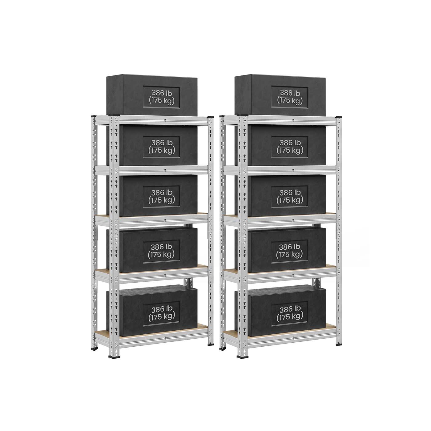SONGMICS Heavy-Duty Storage Shelf, Garage Shelving Unit, 50 x 100 x 200 cm, Supports up to 875 kg, Easy Assembly, Storage Rack, Adjustable Shelves, Silver GLR447E01