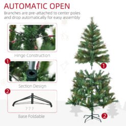 HOMCOM 1.5m 5ft Pre-Lit Christmas Tree Artificial Spruce Xmas Tree Warm White LED Holiday Dcor with Metal Stand