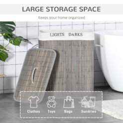 Keep dirty clothes stored and easy and efficient way – with this laundry basket from HOMCOM. There are two sections – a ‘light’ and a ‘dark’, meaning less mix-ups when washing – less clothes ruined. The shell is made from natural bamboo, so it’s lightweight and naturally resistant to moisture. Perfect for bathrooms and kitchens. Comes complete with handle on the lid and side to carry around easily.